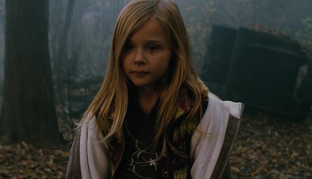 Wicked Little Things nous présente donc une famille, avec la mère (Lory Heuring, déjà dans 8MM2), et les deux filles, l’ado (Scout Taylor-Compton, avant Halloween) et la petite fille (Chloë Grace Moretz, qui nous montrait avant The Eye, Let Me In et Carrie qu’elle aimait déjà le cinéma de genre). Cette jolie petite famille part s’installer dans un coin paumé (forcément) pour hériter du seul bien du défunt mari : une maison, perdue au milieu de nulle part, entourée par la forêt, avec d’anciennes mines en dessous. Rapidement d’ailleurs, le réalisateur parvient à instaurer une ambiance très sympathique. La forêt semble étouffante, la brume toujours présente, les silhouettes se dessinent dans l’obscurité. Pour ne pas aider, le voisinage, si l’on excepte quelques jeunes qui aiment boire et fumer (oui ça en fait du cliché jusque là), ne met pas en confiance, entre le propriétaire du terrain bien salaud et le voisin qui balance du sang sur les portes pour une raison inconnue. Et doucement, très doucement, le métrage met son intrigue et sa propre mythologie en place. Peut-être trop doucement par moment, car il faut bien avouer que Wicked Little Things aborde un rythme très lent, le tout allié à une mise en scène classe, mais du coup lente également. À éviter un soir de grande fatigue, où le risque de piquer du nez avant que les choses ne s’emballent est tout à fait possible. Et ce serait dommage, car avec son ambiance réussie, le métrage a de bonnes choses à proposer.