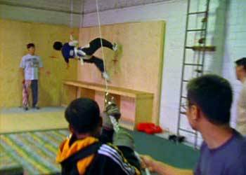 Artifices dont l’industrie cinématographique hongkongaise est passée maître pour faire voler ses épéistes, ses fantômes et tous ses héros mythologiques aux pouvoirs surnaturels. Plus tard, on les retrouvera dans quasiment tous les films d’action.