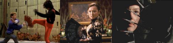 En dehors de ce bref mais éclatant interlude, les démonstrations postérieures notables d’éventails martiaux au cinéma incluent l’affrontement Yukari Oshima et Jeff Falcon dans Outlaw Brothers et celui de Jackie Chan contre la femme fatale jouée par Yukie Kudo dans Rush Hour 3. Un éventail muni de dagues fait une apparition éclair à la toute fin du film d’action français/semi hongkongais ; Le Pacte des loups le temps pour le personnage de Monica Bellucci de transpercer une gorge.