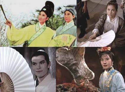 L’éventail est un accessoire quasi omniprésent dans les films historiques, wuxia ou huangmei diao. Leurs apparences et la manière dont ils sont manipulés par l’acteur joue souvent un rôle dans la caractérisation d’un personnage selon des codes théâtraux hérités de l’opéra chinois. L’éventail est ainsi souvent l’accessoire de prédilection des personnages de jeunes érudits dans les huangmeng diao (incarnés la plupart du temps par par Ivy Ling Po dans les productions des Shaw Brothers) ou encore de méchants distingués et perfides dont Tigre de Jade du film Hirondelle d’Or représente l’archétype. Ce dernier se sert de son éventail pour envoyer des signaux à ses hommes et même pour projeter des dards empoisonnés. L’héroïne titulaire et un autre bandit font également usage d’éventail dans le film.