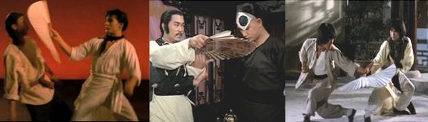 À la même époque, des démonstrations notables d’éventails apparaissent également dans de nombreux wu xia pian produit par la Shaw Brothers tels Sentimental Swordsman, Rendezvous With Death, et Human Lanterns tous chorégraphiés par Tong Gaai lui aussi issu de l’opéra et qui vit des acteurs comme Ti Lung, Chen Kuan Tai ou le cascadeur Yuen Wah employer l’éventail.
