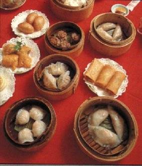 Le Dim Sum (dian xin) « qui touche le cœur » est une petite portion de nourriture sucrée ou salée originaire de la province du Guangdong. Les Dim Sum sont servis au déjeuner dans les restaurants. Il existe une grande variété de Dim Sum qui peuvent se présenter sous la forme de ravioli, beignets, rouleaux, triangles, pâtés, soupes, tartelettes…