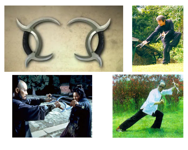 Il s’agit d’une arme spécialisée consistant en deux lames en croissant de lune entrecroisées. Utilisés en paire, ces couteaux, en plus de pouvoir taillader les chairs peuvent bloquer l’arme d’un adversaire et le désarmer d’un revers du bras ou de la main. Employé surtout contre des armes de longue portée comme le sabre, l’épée et la lance. Ils peuvent être utilisés avec vitesse et précision et sont facilement dissimulables sous des vêtements. Ce serait une arme d’origine mandchoue et sont le plus souvent associées avec le style martial Bagua Zhang.