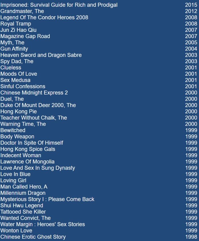 Elvis Tsui, le pape de la Catégorie 3 s’est reconverti. Non pas à la religion mais à une autre forme de divertissement, la série télévisée. De plus, il tourne en Chine maintenant, et ce depuis déjà 8 ans. Autant dire que pour des raisons strictes de censure, ses années Category 3 (Sex and Zen, Eternal Evil of Asia, Chinese Erotic Ghost Story), font parties du passé.