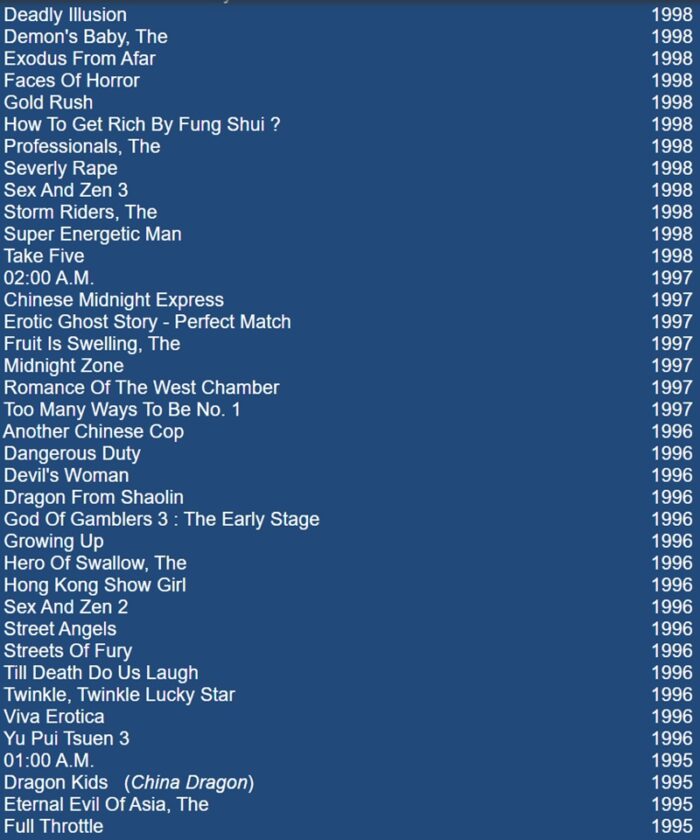 C’est mon manager à l’époque qui me faisait participer à ce genre de films. Etant un acteur professionnel, mon devoir était de suivre fidèlement les instructions des réalisateurs. Il n’y a pas de grande différence dans la manière de faire suivant les catégories de films. Dans les années 80 et 90, il y avait tellement de compagnies qui finançaient les films que je ne pourrais pas vous dire qui exactement finançaient les films de Catégorie 3.
