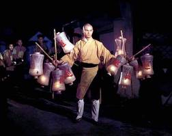 [NDLR : Le personnage du moine San Te ; sauf que comme il ne s’agit pas d’une suite directe, mais plutôt d’un remake du premier, Gordon Liu joue cette fois un personnage totalement différent (l’arnaqueur et roi du déguisement Chun Jen-chieh). San Te est incarné par l’acteur / cascadeur Chin Chu. Dans le troisième – et ultime chapitre – ce sera de nouveau Gordon Liu rempilant dans le rôle du moine…]