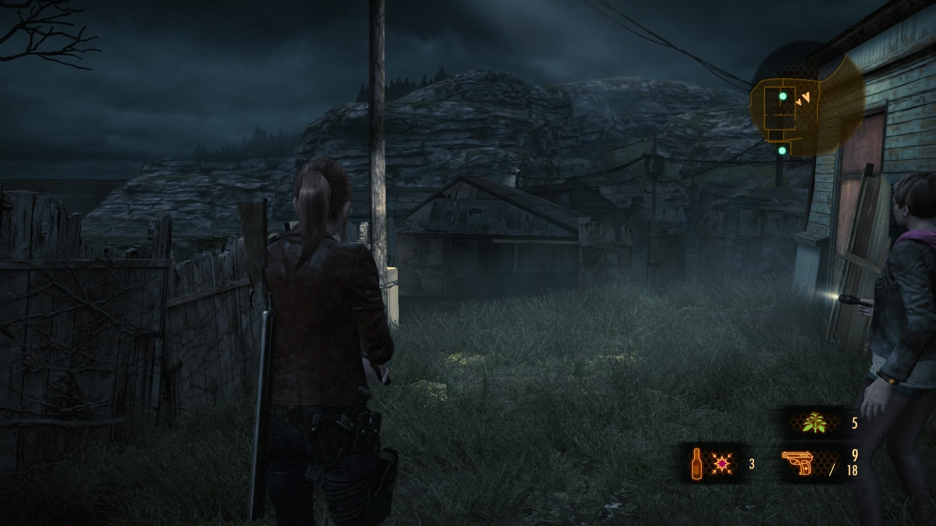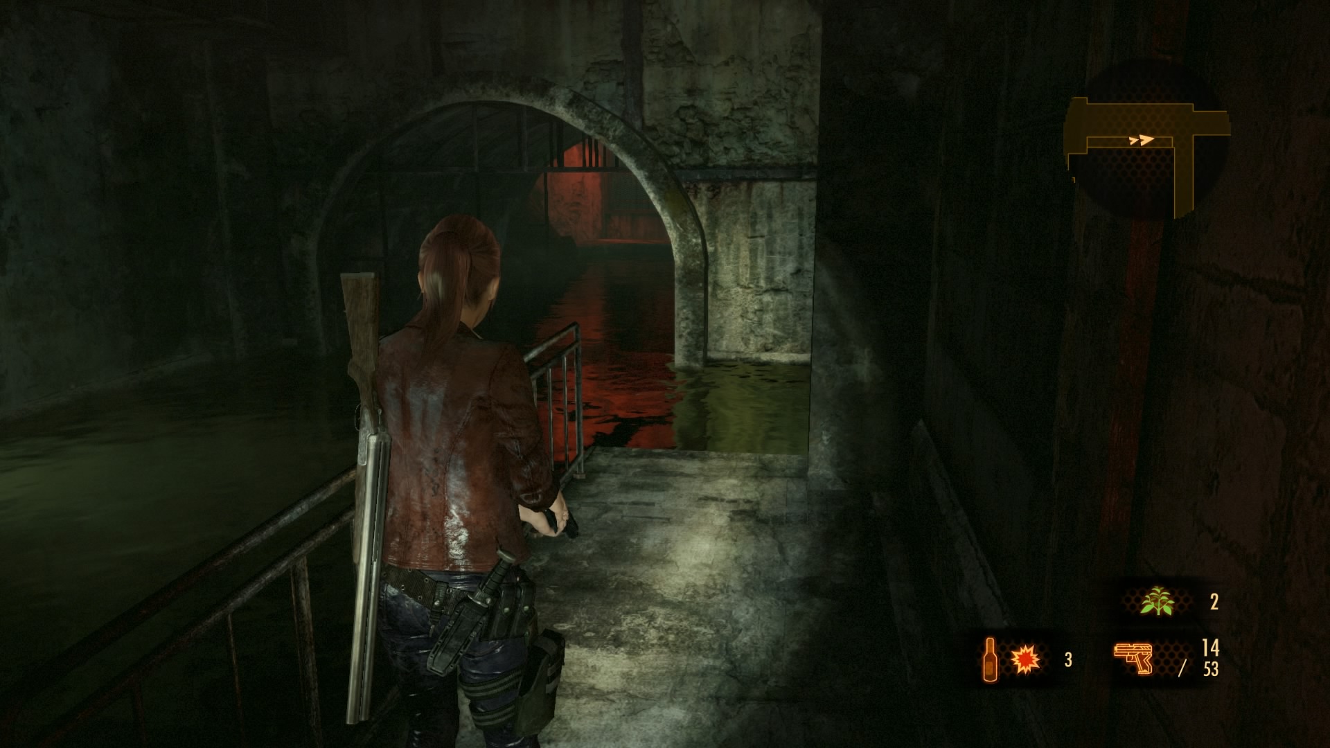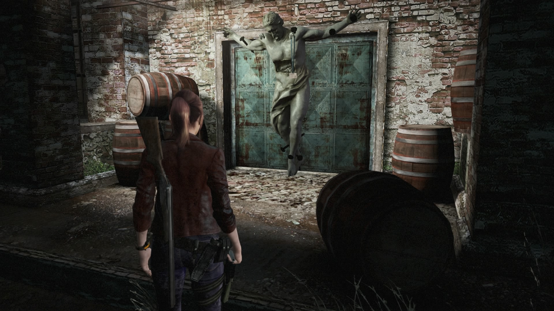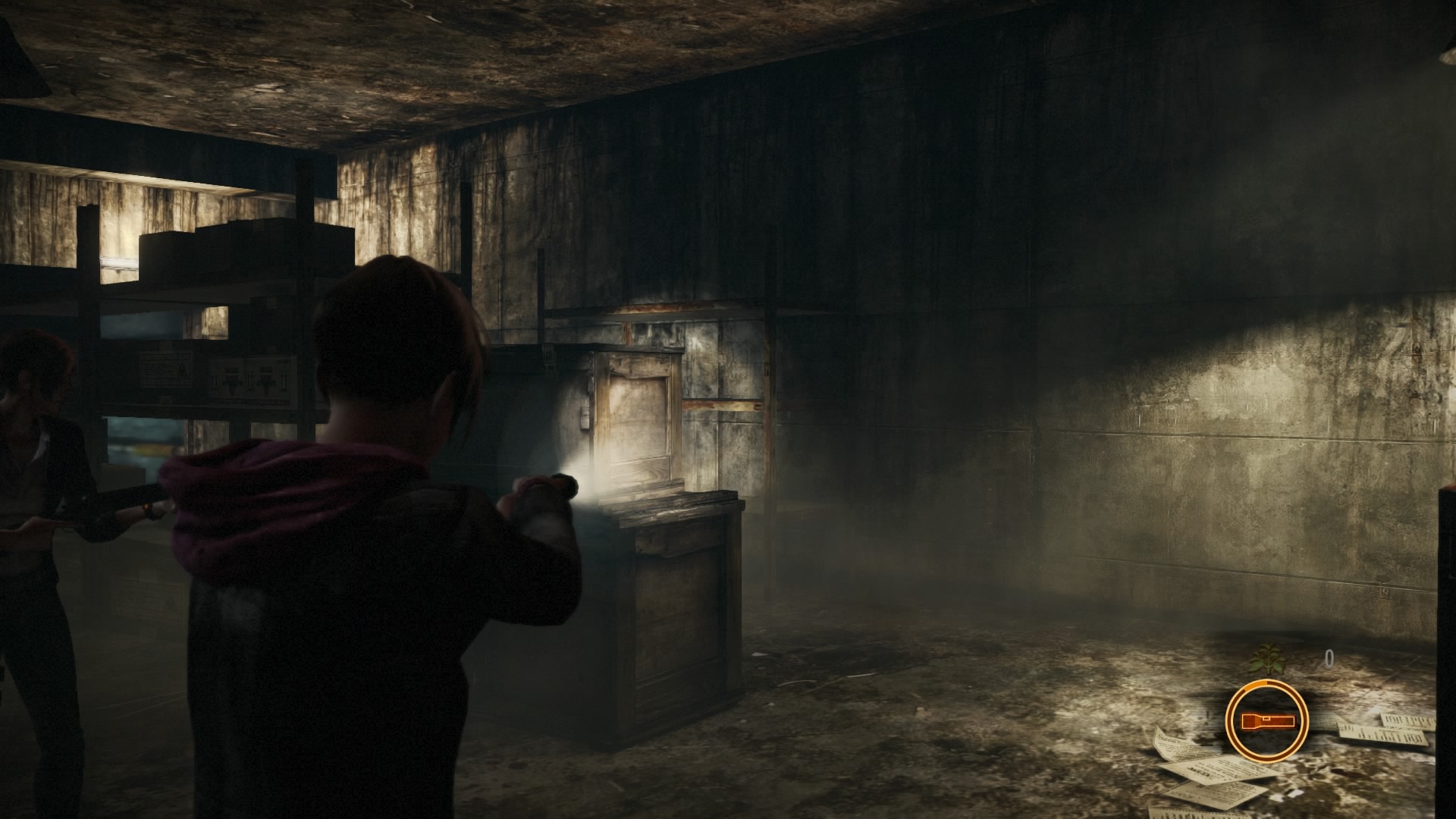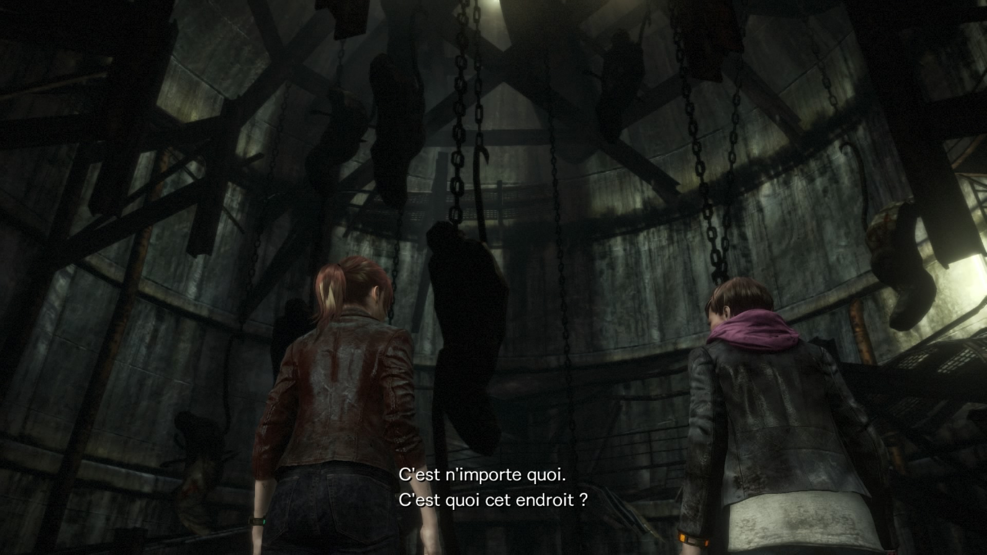 Puis le vrai jeu démarre, et là, première constatation, c’est moche ! Parfois même très moche et approximatif. Certaines textures sont baveuses, les noirs ont parfois bien du mal à paraître ténébreux et inquiétants, la modélisation est loin d’être exceptionnelle, encore moins pour les personnages, leurs animations moyennes… Oui, il va falloir s’y faire, Capcom lance un Revelations 2 à bas prix (25 euros avec le season pass), il ne s’agît que d’une suite de Revelations et non pas un Resident Evil 7, et les moyens ne sont pas les mêmes. Il va donc falloir passer outre l’aspect technique et quelques chutes de framerate pour se plonger véritablement dans le coeur du jeu. Comme annoncé, le jeu est découpé en 4 épisodes, eux-mêmes découpés en deux parties chacun, pour jouer d’un côté Claire et Moira, et de l’autre Barry et Natalia. Le premier épisode ne met pas vraiment en confiance. L’ouverture est expéditive puis nous catapulte dans l’aventure direct, il faut un temps d’adaptation pour l’aspect PS2 en HD que nous propose le titre, et la première partie n’est pas franchement passionnante ou innovante. On notera tout de même un excellent travail sur l’ambiance sonore, bien plus réussie que celle d’un Resident Evil 6, et sur les phases d’ambiance.