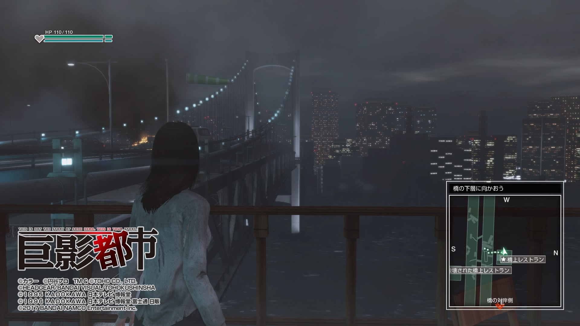 Kyoei Toshi, de son nom international City Shrouded in Shadow malgré son absence de sortie internationale, c’est un titre qui me tenait à coeur, et surtout un titre que je n’aurais jamais raté, malgré la barrière de la langue. Car oui, il faut avouer que jouer à un jeu intégralement en Japonais, surtout quand pas mal de dialogues et d’informations sont uniquement écrites et non parlées, c’est parfois difficile (oui, j’avais fais Yakuza 5 et Yakuza 0 en Japonais intégral, ainsi que quelques autres jeux). Mais City Shrouded in Shadow, c’était le premier jeu du tout nouveau studio Granzella. Un studio prometteur, puisque créé par d’anciens développeurs de chez Irem Software en 2011 suite à l’annulation de leur dernier jeu suite au tragique tremblement de terre de 2011 au Japon. Et pour le cour d’histoire, Irem Software, c’est un studio que j’apprécie particulièrement, pour nous avoir livré la saga des Disaster Report. Le premier opus, datant de l’ère Playstation 2 (renommé en France SOS The Final Escape), était pour moi un grand moment, malgré son côté trop ambitieux pour la machine (ah les baisses de framerates et la maniabilité parfois approximative). Mais fuir une ville détruite par un tremblement de terre, c’était cool, malgré le fait que les versions occidentales aient eu la bonne idée de rendre les personnages blonds pour les faire passer pour des Américains. Puis il y a eu le second opus, rebaptisé par chez nous Raw Danger, mon préféré, où il fallait encore fuir, mais un tsunami ce coup-ci. Gérer l’humidité, le froid, sauvegarder à des radiateurs, oui c’était cool. Si le troisième opus est resté inédit chez nous et disponible uniquement sur PSP, l’annulation du quatrième opus (qui depuis a eu droit à une sortie, et bientôt une sortie US) aura forcé les développeurs à créer leur propre studio, et City Shrouded in Shadow est leur premier jeu. Un jeu avec le même concept qu’avant, à savoir fuir une ville, mais où il ne faut pas fuir un tsunami ou une quelconque autre catastrophe naturelle, mais bel et bien des monstres géants qui se foutent sur la gueule, et nous sommes tout simplement les dommages collatéraux.