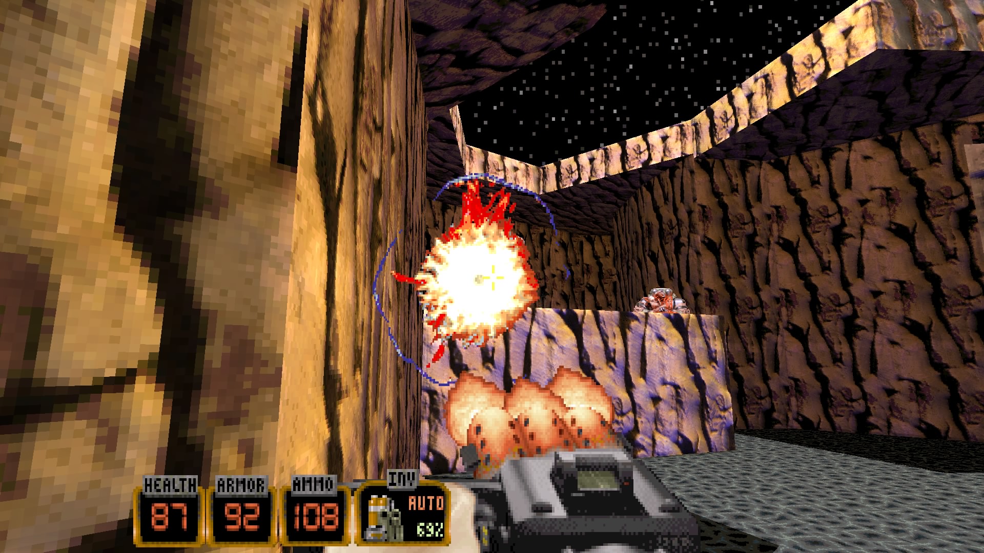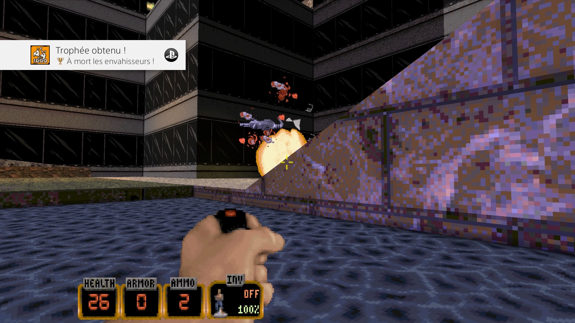 Toujours est-il qu’en 2018, il est possible de prendre un pied pas possible en jouant à Duke Nukem 3D, qu’il s’agisse de la version d’origine, de la version légèrement remasterisée, ou de la dernière version avec ses nouveaux niveaux et de nouvelles lignes de dialogues enregistrées par le même doubleur d’époque (chapeau). Car Duke Nukem 3D, dans le spectacle jouissif et incroyablement nerveux qu’il propose, tient la route face aux FPS modernes, qui ont évolués vers quelque chose de beaucoup plus scriptés, mais surtout de beaucoup moins nerveux, et de beaucoup plus facile. Duke Nukem 3D, c’est nerveux, il faut bouger, il faut tirer, et l’on peut mourir, facilement, sans checkpoint à la pièce précédente (même si l’on peut techniquement sauvegarder quand on veut). La vie, il faut la récupérer, elle ne remontera pas toute seule. Et comme dit, Duke, c’est du jeu de tir jouissif et surtout qui ne se prend pas au sérieux, contrairement à tous les titres qui sortent tous les ans sur nos consoles (hein Call of Duty, je te vise là !). Mais pour le joueur qui n’a pas été « éduqué » à coup de Duke, il faut avouer que certains niveaux sont sans doute un peu trop labyrinthiques. Il arrive que l’on s’y perde. Oui, si le jeu a bien vieillit visuellement, on pourra toujours trouver à redire sur les sprites des ennemis, qui ne sont qu’en 2D. Est-ce grave ? Non. Et puis ce n’est pas tous les jours qu’un héros bad-ass de jeu vidéo nous sortira des répliques de Invasion Los Angeles de John « Dieu » Carpenter ! Bref, Duke 3D aura fait mon bonheur à l’époque sur Playstation, puis sur Nintendo 64, et fait encore mon bonheur aujourd’hui sur PS4.