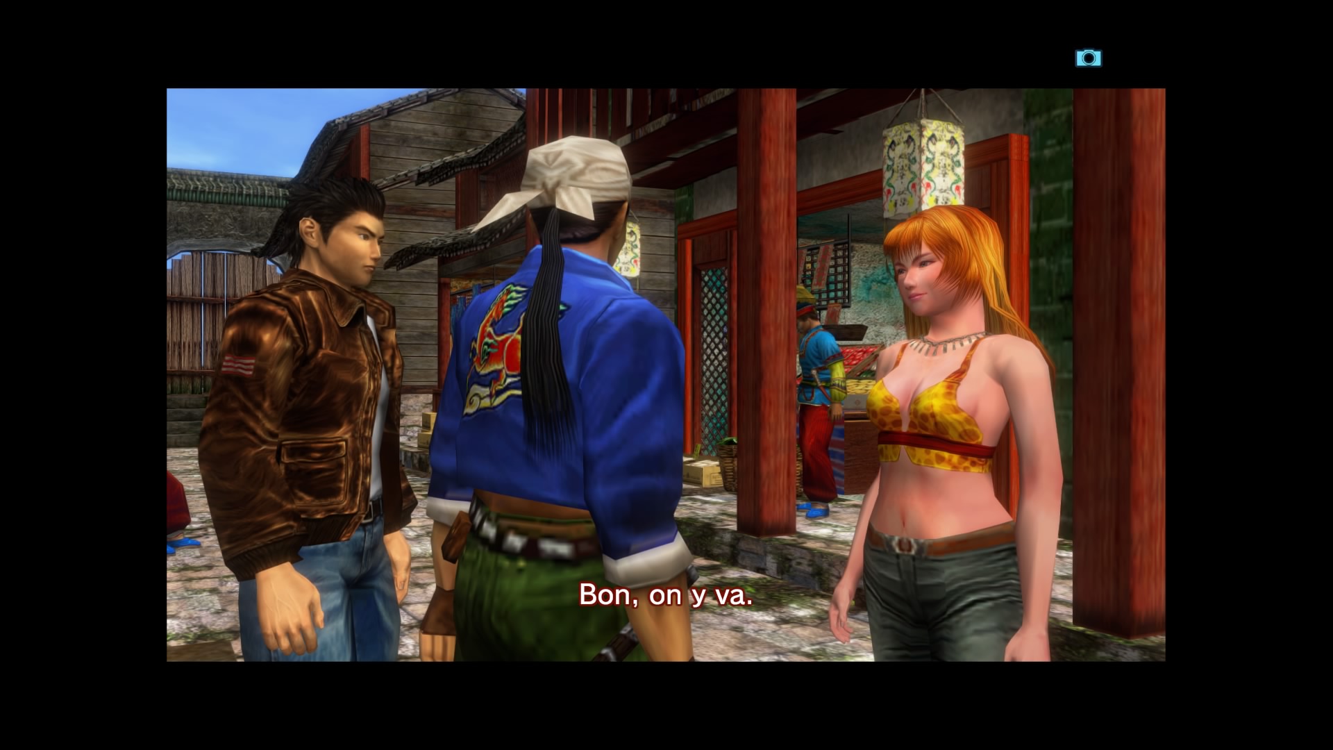 Car encore une fois, c’est donc avec la version remaster de 2018 que j’aurais fais l’aventure. Et comme pour le premier, le minimum a été fait. Un petit lissage HD, et voilà, on en parle plus. Le jeu est en 16/9, les cinématiques et moments importants toujours en 4/3, et si en 2001 Shenmue 2 était une pure vitrine technologique, ce n’est plus le cas en 2018. Attention, si l’on adhère à son univers, certains paranoramas, certains personnages conservent clairement leur charme, il n’y a pas photo. Mais joué de nos jours sur des installations beaucoup plus grandes que la petite télévision 36cm que l’on avait tous en 2001, ce n’est pas pareil. Et si le 16/9 et le lissage HD sont un plus, et bien en fait, c’est juste le minimum que l’on pouvait attendre, tant le reste est identique au jeu de l’époque. Avec son gameplay lourd, ces quelques bugs, ces rares dialogues qui saturent mais il faut le souligner. Est-ce que ça entache l’expérience ? Si vous savez dans quoi vous allez, non. Si vous aimez de base Shenmue et connaissiez les jeux de base, non. Si vous êtes très jeune et ne jouez qu’à des open world made in Ubi Soft, fuyez. Bon, déjà car Ubi Soft, ça fait 10 ans que tous leurs open world se ressemblent et qu’on a fait le tour du sujet. Mais c’est un autre débat. Voilà donc pour la qualité de ce remaster. Pas honteux, mais ne nous donnant que le strict minimum. Ce qui est dommage, car en y repensant, Sega aurait pu, par exemple, demander de l’aide au Ryu Ga Gotoku Studios, faisant les jeux Yakuza, qui par certains aspects se sont inspirés de Shenmue, pour les aider à donner un coup de jeune à Shenmue. Sans les dénaturer, sans en changer le rythme, ni même les scénarios, mais juste en utilisant leur moteur maison pour redonner vie à Shenmue. Mais encore une fois, je m’égare.