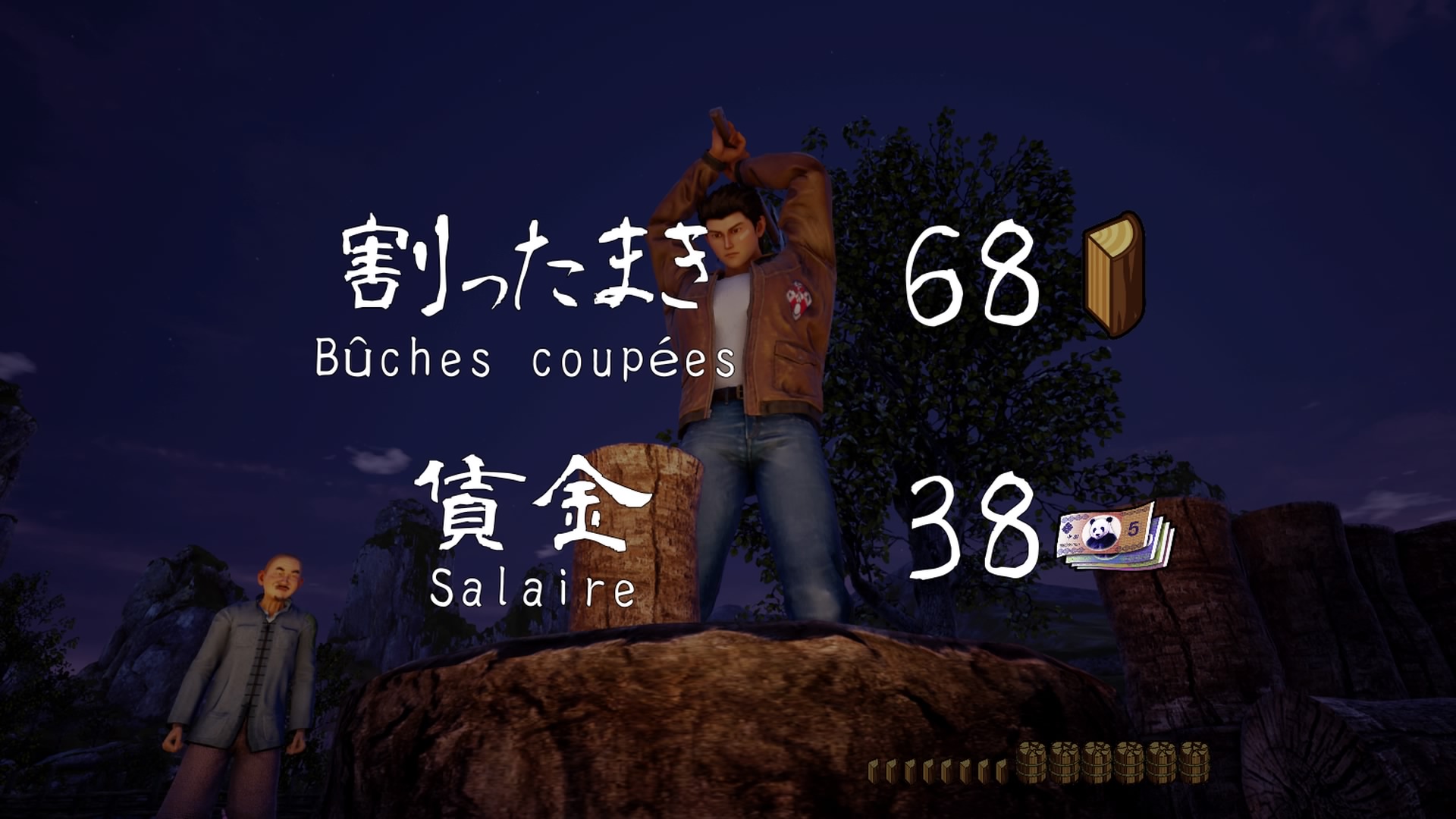 La seconde mauvaise surprise de Shenmue 3, qui d’après certaines rumeurs, aurait également du être implémentée dans Shenmue 2, c’est la barre de vie, et donc d’endurance. Car oui, endurance ou vie, c’est la même chose dans le jeu, et courir réduit notre endurance, faire quelque chose réduit notre endurance. Et donc notre vie. Et donc, si tout à coup, sans prévenir, on se retrouve en plein combat, en fin de journée, avec une barre d’endurance et donc de vie presque vide, et bien tant pis, on doit se taper un combat perdu d’avance. Au début du jeu, c’est énervant. Notre barre se vide vite. Mais après quelques entrainements, il faut avouer que je pouvais faire quasiment toutes les journées du jeu sans même manger une fois, ou juste une fois. Frustrant et gênant durant les premières heures, on en vient à oublier ce détail. Heureusement. Un défaut pendant 5 ou 6 heures avant de se faire oublier. Mais ce sont bien là mes plus gros problèmes avec Shenmue 3, tant le reste m’aura finalement donné ce que j’attendais clairement de lui. Beaucoup se seront plaint donc de l’aspect technique, mais vous attendiez quoi pour un budget si petit ? Beaucoup se sont pleins de la rigidité et de la lourdeur de l’ensemble, mais vous auriez dit quoi si Ryo pouvait sauter partout et que le bouton R1 (qui ouvre ici l’inventaire d’ailleurs) faisait absolument tout comme dans un Assassin’s Creed ? Beaucoup se sont plaints du rythme posé de l’aventure, mais vous auriez dit quoi si Shenmue 3 était un jeu rythmé façon Far Cry avec 40 événements aléatoires à la minute qui ne nous laissent jamais souffler ? Je ne cherche pas à faire passer Shenmue 3 pour le chef d’œuvre qu’il n’est pas, mais juste pour le jeu qu’il a voulu être.
