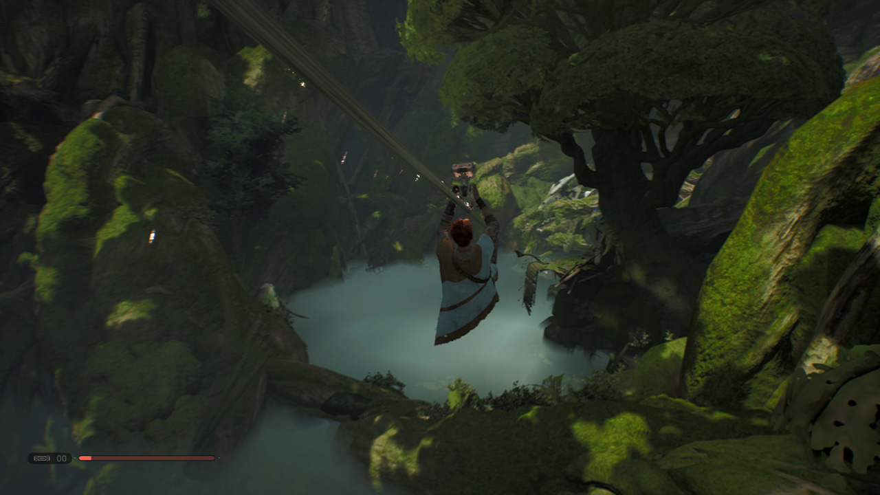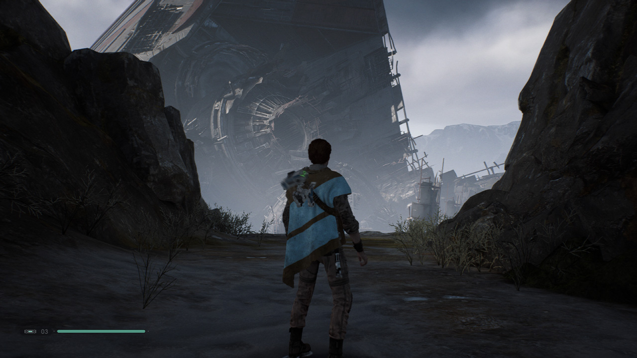 En fait, dés les premiers instants, on comprend facilement que si les niveaux sont construits comme dans un Metroidvania, que le design emprunte à la saga de From Software, le gameplay lui fait plutôt penser à d’un Uncharted ou Tomb Raider, en alternant phases de plateformes, petites énigmes pour les imbéciles et combats. Et cinématiques bien entendu, car nous sommes dans un jeu solo avec une narration. Mais ça fonctionne. La première mission, faisant office de tutorial forcément, nous en met plein la vue. On renvoie les tirs lasers, on découpe avec le sabre laser, on esquive ou bloque au bon moment, on utilise la force pour ralentir les ennemis ou les envoyer valdinguer loin derrière, voir tomber dans le vide, et on prend son pied. Puis nous voilà enfin lâché dans une galaxie lointaine, avec notre vaisseau, nos compagnons, et plusieurs destinations possibles. Il va falloir se faire en gros 4 planètes (plus quelques unes bonus mais plus courtes et scriptées), en long, en large et en travers pour débloquer tous les secrets, et trouver finalement l’objet de notre quête, un objet contenant une information capitale, pour les jedis, mais également pour l’empire. C’est aussi simple que ça. Scénaristiquement, rien de bien fou, mais c’est suffisamment bien écrit pour capter l’attention du joueur durant toute sa partie, soit environ 30 heures. Plus s’il tient à découvrir tous les secrets de chaque planète, mais à moins de vouloir tous les peintures pour notre droïde, ou tous les ponchos pour notre héros, rien de bien folichon ou surtout d’obligatoire. Ça se suit très bien donc. Graphiquement, 95% du temps, le jeu est une belle claque. C’est beau, fluide, les chutes de framerates sont ultra rares (deux fois sur toute ma partie), le jeu n’a jamais planté. Les paysages sont sublimes, la distance d’affichage plus que correcte.
