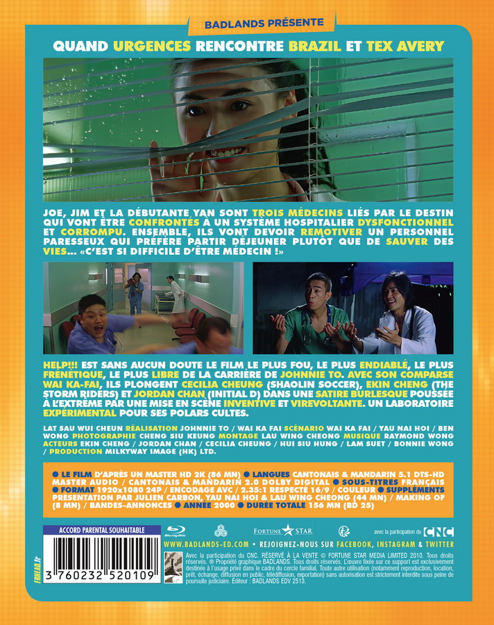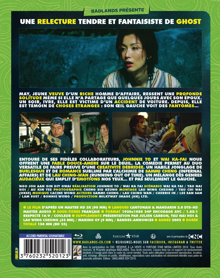 Les amateurs connaissent sans doute les polars les plus cultes du studio de Johnnie To, la Milkyway, mais nombreux sont ceux qui connaissent un peu (beaucoup ?) moins leurs comédies, et ça tombe bien parce que c’est là dedans que Badlands est allé piocher avec les films My Left Eye Sees Ghosts (2002), Help!!! (2000) et Fat Choi Spirit (2002). On vous en parle plus en détails ci-dessous avec les visuels et les informations complètes sur les éditions.