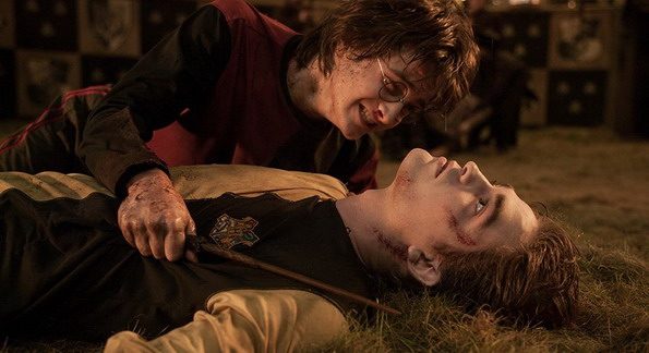 Un an plus tard donc sortait le quatrième volet avec aux manettes Mike Newell (Quatre mariages et un enterrement, Donnie Brasco, Le sourire de Mona Lisa). On rajoute au casting l’excellent Ralf Fiennes (Hannibal, La Liste de Schindler) et Brendan Gleeson (Kingdom of Heaven, Le village, Troie). Exit la musique de John Williams au profit de Patrick Doyle. Alors sur le simple plan cinématographique (oui à partir d’ici je vais décorréler les films et les livres, après tout, ce qu’ont fait les réalisateurs et la production en voyant qu’ils n’avaient plus besoin des lecteurs pour assurer le rendement des sorties ciné), ce quatrième volet est juste une déferlement d’effets spéciaux très réussis, des acteurs qui ont grandi, murit et qui jouent de mieux en mieux, une ambiance résolument plus adulte, du suspens, de l’action, des moments jouissifs. Certains ont dit que c’était le film le plus réussi. Le plus souvent cela se tient. Et si l’ambiance se fait plus sombre, parfois plus horrifique, Mike Newell parvient également à la traiter avec un humour so british ! Mais vous vous doutez de la suite, les fans eux n’en reviennent pas de ce qu’ils prennent dans le fondement ! Le viol collectif continue et nous regardons transis les romans subir la moulinette du blockbuster gonflée à bloc. Pour je ne sais quelle raison quelconque, que j’ignore et dont je me moque mais que je rapprocherais du signe $ brillant dans quelques yeux malicieux, on se retrouve face à trois collégiens immatures et à la limite de l’antipathique (un comble, ce sont les héros !) quand ils sont secoués par leurs hormones/sentiments. Sentiments qui d’ailleurs, sont ici extrêmement mal gérés ; chaque personnage passe du coq à l’âne toutes les cinq minutes de ce point de vue-là, et l’appuyer avec la journaliste du point de vue d’Hermione était tout sauf drôle d’autant qu’on ne perçoit pas sur le moment les ravages de la rumeur et de la médisance. Le retour de Voldemort aurait pu rehausser le niveau mais on a le droit à un Voldemort façon Joker de Batman en mode hystérique (et le doublage français le rend encore plus ridicule) qu’autre chose et cela retire toute crédibilité au « Seigneur des ténèbres ». Ne parlons même pas du sort réservé à Dumbledore qui de sorcier over puissant, sage et charismatique, est traité ici comme un pantin abruti et remuant à la limite du grotesque. Heureusement que le sujet du film, le tournoi de la coupe de feu, est plus intéressant que le reste. Sauf qu’il n’est pas et de très loin le seul propos du roman.