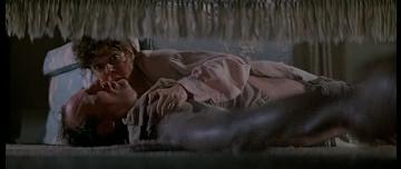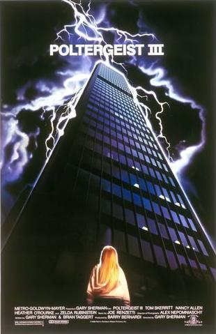 Avec ou sans ce soucis, Poltergeist 3 est bancal depuis le début. Gary Sherman a une vision différente de la saga, permettant ainsi d’économiser du budget. L’autre monde est ainsi symbolisé ici par les miroirs, ou toute autre surface réfléchissant une image. Même une flaque d’eau pourra mener de l’autre côté. Le réalisateur va d’ailleurs s’amuser comme un petit fou avec tous ces reflets, et il faut avouer que bien que le résultat ne soit pas extraordinaire ou palpitant, les 45 premières minutes du film passent bien. Le réalisateur délocalise l’histoire dans un immeuble de Chicago (pratique, les fenêtres sont partout), et place la jeune Carol Anne chez sa tante et sa famille. Nouveaux personnages donc. Le souci, c’est que tout respire le cliché. On a l’ado qui n’obéit pas aux parents et veut sortir, la tante qui parfois craque et aimerait retrouver sa vie d’avant, l’oncle tout gentil. Oui, rien d’extraordinaire. Le pire, c’est que le casting lui a de la gueule, mais Sherman n’a pas l’air franchement à l’aise pour diriger ce bon monde. On a donc Tom Skerritt (Alien), Nancy Allen (Robocop, Les Enfants du Maïs 6) et Lara Flynn Boyle (Twin Peaks) en plus des survivants des autres opus.