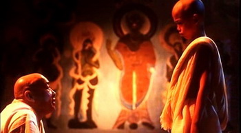 Et ce genre de scènes vont s’enchaîner jusqu’à la fin du film, en un peu moins mais quand même très agréables. Le problème, c’est qu’elles vont être entrecoupées, comme tout bonne ghost kung fu comedy qui se respecte, de scènes de comédie et de romance, qui sont malheureusement plutôt ratées. Pas franchement amusantes, la palme de la scène la plus ratée revient à celle lorsque le jeune disciple, âgé de 13/14 ans à tout casser, accouche en allant aux toilettes (!!!) d’un esprit dont il avait avalé l’âme auparavant, ce dernier n’arrêtant pas par la suite de l’appeler « maman »… Il en est de même avec la romance donc, pas intéressante pour un sou mais qui ne s’éternise pas trop donc ça va.