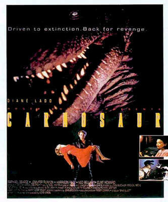 Ah 1993, rappelez-vous, cette année où les dinosaures furent lancés sur le devant de la scène grâce à Roger Corman… Bon ok, retour en arrière. Dans les années 80, John Brosnan sort un roman, Carnosaur. Le succès n’est pas là, mais quelques années plus tard, c’est le roman Jurassic Park qui sort et qui cartonne. Carnosaur, le roman, ressort une nouvelle fois pour profiter du succès. Et lorsque Steven Spielberg commence à mettre en boite Jurassic Park, Roger Corman, ce petit malin, ne peut pas en rester là. Sa femme contacte l’écrivain, qui livre une première version du scénario. Corman ne fait pas dans la demi-mesure, lance la production avec Adam Simon à la réalisation, qui remanie totalement le scénario, et Carnosaur est lancé avec un budget avoisinant les… un million de dollars attention !