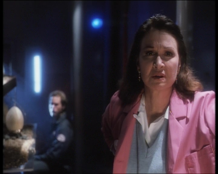 Carnosaur, un film qui va donc nous parler de Carnosaur, une espèce bien spéciale de dinosaures qui… Ah non attendez, on zappe ça, le film mettant en scène un raptor et un T-Rex. Ah non attendez, on zappe ça aussi, le raptor ne s’invitera dans la saga que dans le second opus, grâce à sa popularité avec Jurassic Park, et ce premier épisode met en scène un Deinonychus et un T-Rex donc. Passé ce détail, que nous propose Carnosaur ? Et bien, imaginez un mix entre The Crazies de George A. Romero, Jurassic Park de Steven Spielberg, le tout saupoudré d’une pincée de nawak, et c’est parti pour 1h23 de bonheur. Car Carnosaur, autant par ses moments nawak qui vont vous donner un mal de ventre pas possible, va également vous surprendre par des idées parfois connes, parfois nihilistes. On suit donc, grosso modo, une scientifique folle (Diane Ladd, on se demande ce qu’elle fait là) qui a créé un sérum qui contamine les poulets (et les femmes aussi), les faisant pondre des œufs. Des œufs de dinosaures bien entendu, de Deinonychus. Une de ses petites peluches s’évade et va semer la pagaille. Non loin de là, ben, la routine, on a un shérif, noir (il va mourir) et bad-ass (affronter un dino à coup de punchlines et de fusil à pompe, on a la classe, ou pas), un gentil monsieur un brin alcoolique, une blonde écolo, et puis voilà. Et sans raison, on a la méchante scientifique qui garde un T-Rex enfermé grâce à des rayons lasers ( !!! ). Oui la routine. Attendez quoi ?