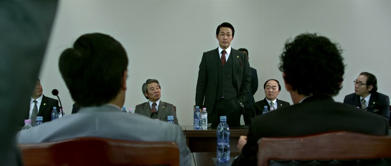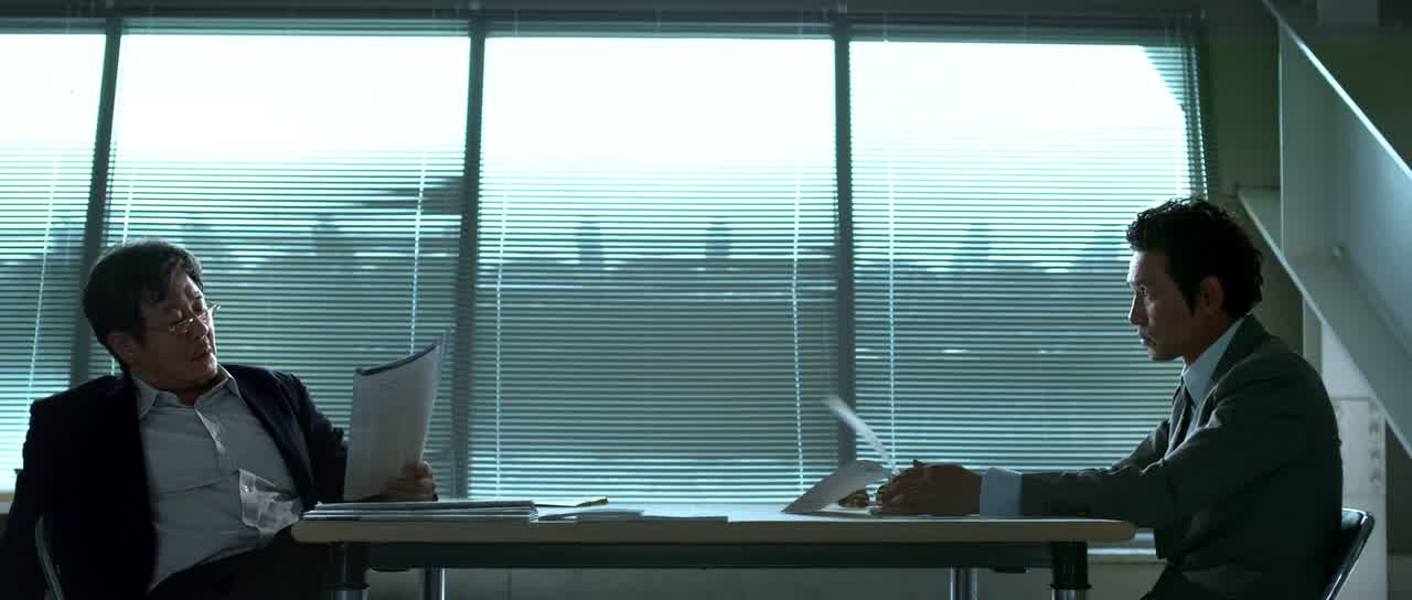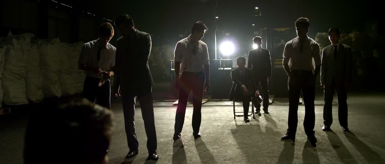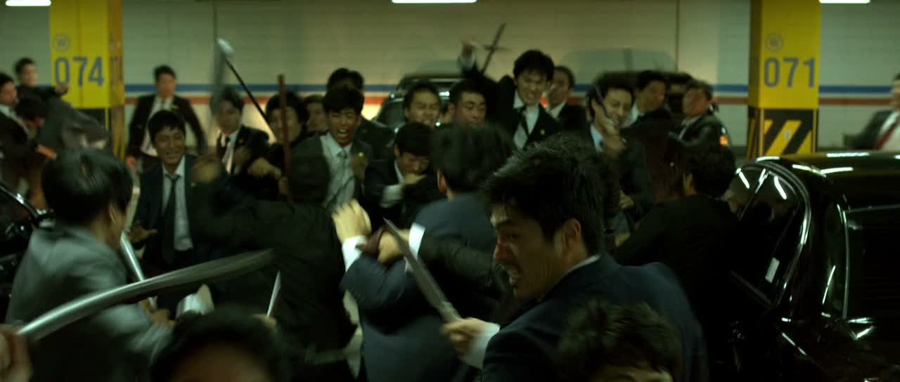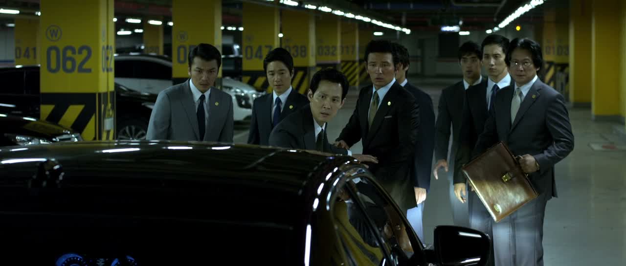Bien entendu, il y a beaucoup d’autres personnages, mais le scénario s’articule surtout autour de ce trio, qui fonctionne bien. Si l’histoire nous promet une guerre de successions, il ne faudra pour autant pas s’attendre à un polar musclé où tout explose de partout, New World se veut plutôt réaliste, et les explosions de violence seront rares, très rares. Sans doute ce qui rend leur impact plus fort. Ainsi, l’une des scènes les plus prévisibles du métrage (ATTENTION SPOILER) où Hwang Jung-Min réussira à démasquer certaines taupes dans la société et va les exécuter froidement fonctionne à merveille et fait quelque peu froid dans le dos (FIN DU SPOILER). Trahisons, exécutions, rares et brèves explosions de violences, New World est plus subtil qu’il n’y paraît aux premiers abords, et les adeptes de l’action seront sans doute déçus. Une des rares scènes d’action sera pourtant très réussies, et rappellera elle aussi d’autres métrages du genre, en se déroulant dans un parking et dans un ascenseur. La réalisation de Park Hoon-Jung (je n’ai rien vu de lui auparavant) est d’un plutôt bon niveau, et si l’on échappe pas à certains stéréotypes et effets de styles, l’ensemble est carré, très propre à tous les niveaux, que ce soit les cadrages, la photographie, le montage, la musique, et c’est du très bon boulot, qui donne à New World un cachet sérieux et sombre. Le métrage aurait sans doute gagner à être moins classique, ou du moins à durer un poil moins longtemps pour nous faire rentrer bien plus rapidement dans son histoire, mais demeure un polar noir et carré, qui remplit son contrat.