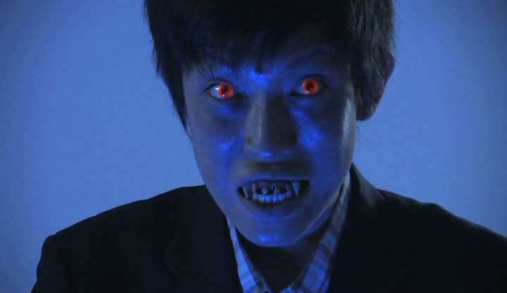 Malheureusement, il n’en est rien ici. L’ensemble du film sent le produit V-Cinema tourné un peu à la va vite en numérique avec une photographie faisant très amateur. On sent que le réalisateur n’est pas un grand technicien et se contente de filmer assez platement une histoire pas forcément passionnante et rythmée dés le départ, ne faisant qu’enchaîner des scènes de dialogues plutôt molles, le tout entrecoupé à intervalle régulier de scènes érotiques très soft filmées aussi platement que le reste. Certains effets, comme la vérité sur Nami, qui est un vampire (quelle surprise hein !) révélé après une scène de sexe, seront ridicules. Si l’aspect érotique du métrage est raté, très soft et filmé sans âme, on pourra en dire de même de la partie horrifique, se limitant à une apparition de crocs et à quelques scènes de dégustation, filmées la plupart du temps en plan large et de dos, pour ne pas avoir à montrer de quelconques effets spéciaux.