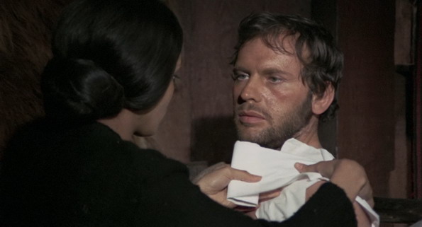 Marquant, Le Grand Silence l’est également grâce à ses personnages. Jean-Louis Trintignant tout d’abord, pas habitué à ce genre de rôle, dans son personnage au passé traumatisant nous expliquant pourquoi il est dans l’incapacité de parler. Un personnage mutique, as de la gâchette, mais complètement dépassé par la réalité dans laquelle il évolue, où les riches notables vont jouer de leur pouvoir pour faire bannir les plus pauvres de la société juste pour acquérir leurs terres, en mettant leur tête à prix ; où les chasseurs de prime sont avides de massacre, même pour toucher une maigre récompense, le tout sous couvert de la loi. On retrouve le toujours flippant Klaus Kinski (Fitzcarraldo, Aguirre La Colère de Dieu) dans un rôle qui l’est tout autant, parfait avec sa gueule de l’emploi en chef de file de ces chasseurs de prime qui saute sur la moindre occasion de faire du pognon, aussi immonde soit-elle. Un personnage très tendancieux car toujours dans les clous des lois. Des lois horribles car allant dans le sens de ceux qui ne cherchent que le profit et le pouvoir. Et puis il y a le shérif, interprété par Frank Wolff (Il Etait une fois dans l’Ouest, Salvatore Giuliano), seul personnage réellement positif du film, qui représente la vraie justice, mais qui n’est au final qu’un pantin qui n’a aucun pouvoir dans une société où c’est la loi du plus fort, la loi de celui qui a le pognon, la loi de celui qui a de quoi se payer des gens pour faire le sale boulot.