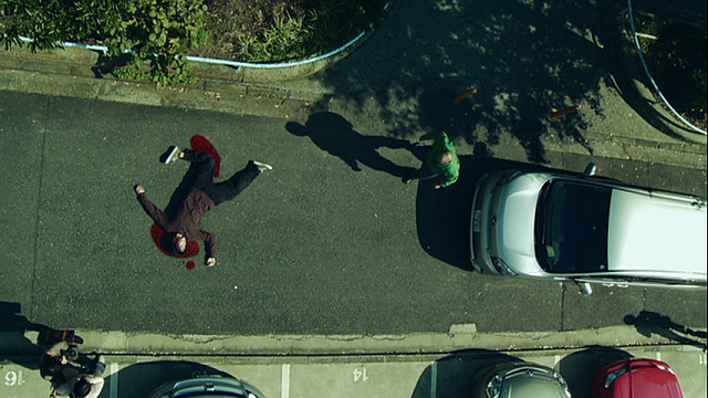 L’histoire se focalise donc sur Shin, un handicapé en chaise roulante, qui s’est réfugié avec son grand frère dans un entrepôt, où ils sont dés le départ aux prises avec des employés, eux aussi réfugiés ici, et s’amusant à dégommer les zombies depuis le toit. Première constatation, le film est en vue subjective, et dans une des premières scènes, Shin joue au jeu vidéo Dead Rising dans sa chambre. Oui, nous sommes bien devant une adaptation. Le fait que le film se déroule en vue subjective est d’ailleurs une excellente idée quand elle est bien exploitée, qui nous place bien à la place du personnage (voir Enter The Void ou encore le remake de Maniac, bien que ces deux métrages aient leurs défauts). Et pour mieux comprendre comment les personnages en sont arrivés là, le film reviendra souvent en arrière pour nous montrer, tout d’abord le passé de Shin et son frère, puis d’un autre personnage qui arrivera par la suite dans l’histoire. Ces flashback, procédé purement cinématographique, sont eux tournés normalement.