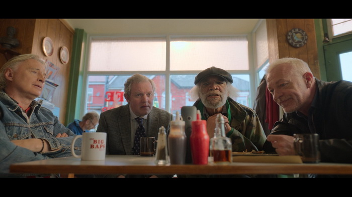 Le système d’allocations chômage, les sans-abris, la délinquance des adolescents, l’état de la police, le sous-financement des établissements scolaires publics, la défaillance des services de santé (classiques ou psychiatriques), la considération des handicapés, et bien d’autres sujets sensibles sont abordés. Des sujets lourds qui, à l’instar du film, sont abordés ici avec douceur, avec un humour typiquement anglais qui, bien qu’il ne vienne pas désamorcer le propos, le rend un peu plus léger. Nous ne sommes pas ici dans un enchainement de gags, loin de là, mais certaines situations vont nous arracher un fou rire. D’autres nous tirer une larmichette, avec par exemple ce dernier épisode fort en émotion, sorte d’adieu déchirant (mais aussi parfois comique, le coup du congélateur) à un personnage haut en couleur de la première heure. Tout au long des huit épisodes, ces thématiques sont abordées à travers les attentes, les croyances, les déceptions, ou encore les mensonges des personnages envers eux-mêmes qui, à force de se dire que tout va bien, vont parfois sombrer peu à peu à cause de leur impuissance et leur vulnérabilité face au système. Les deux auteurs Simon Beaufoy (qui avait signé le scénario du film de 1997) et Alice Nutter sont suffisamment malins pour tantôt nous amener là où on ne s’y attend pas, tantôt pour nous conforter dans ce qu’on souhaitait. On se sent comme dans des petits chaussons avec ces personnages et, bien qu’on pourrait être découragé par le premier épisode et cette histoire de kidnapping de chien célèbre, très rapidement le charme du film originel s’installe. On pourra lui reprocher de parfois s’étirer trop en longueur et sans doute que 6 épisodes au lieu de 8 aurait été un meilleur format. Par exemple, tout l’arc narratif avec le pigeon était assez dispensable, bien qu’il fût là pour coller avec le personnage un peu à côté de la plaque de Lomper. De manière générale, comme dans beaucoup de séries, certains épisodes sont plus forts que d’autres, mais tous ont leurs moments mémorables et, lorsque le générique de fin du dernier épisode retentit, on est un peu triste de quitter ces personnages pittoresques et ces paysages charmants de Sheffield. Une saison 2 n’est clairement pas nécessaire car cette saison se suffit à elle-même, mais si saison 2 il y a, il y a fort à parier que j’y jetterai un œil malgré tout.