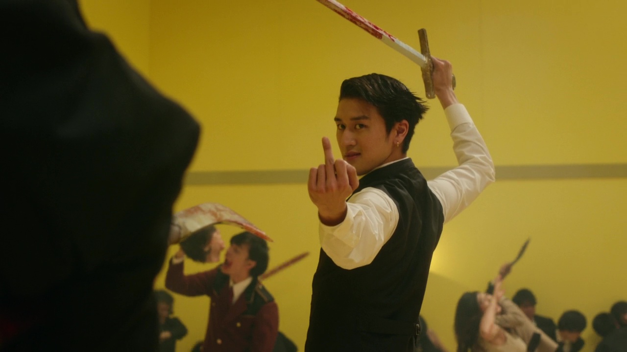 Car pendant 7 épisodes, on alterne clairement entre différents styles, genres, personnages, époques. Rien de nouveau pour le réalisateur, qui a limite fait de cette structure narrative sa marque de fabrique (Noriko’s Dinner Table, Love Exposure, The Forest of Love Deep Cut). Et il donne, par moment, l’impression qu’il veut que Tokyo Vampire Hotel rejoigne ces œuvres précédentes pour parler de choses diverses et variées, et au final donc, profondément humaines. Du coup, quand tout commence, assez fort d’ailleurs, par un massacre sec et froid (et kawaii) dans un restaurant, on se dit que l’on va suivre le destin de Manami (Tomite Ami, ancienne AKB48, qui brilla dans Antiporno de Sono justement, puis dans la série The Naked Director), poursuivie par deux clans de vampires différents. Mais en fait non, car dés l’épisode 2 et un gros retour en arrière, on se dit qu’en fait, le cœur de cette intrigue, c’est plutôt cette guerre durant depuis plus de 300 ans entre les Dracula et les Corvin, et que ce qui intéresse la série, c’est donc cette guerre et son issue. Ah attendez, en fait non, puisqu’on se retrouve rapidement en huis clos dans un hôtel où les Corvin ont invité plusieurs humains pour les faire s’accoupler et ainsi survivre à la fin du monde imminente, et l’accent est clairement sur les humains, emprisonnés malgré eux entre les murs de l’hôtel. Du coup, on se dit que c’est la rébellion et la libération des humains qui intéresse le réalisateur. Arrivé donc au bout des 10 épisodes, je n’ai toujours pas la réponse en fait. Ce qui est certain par contre, c’est que Sono Sion se fait plaisir, balançant à l’écran donc un peu tout ce qu’il aime.