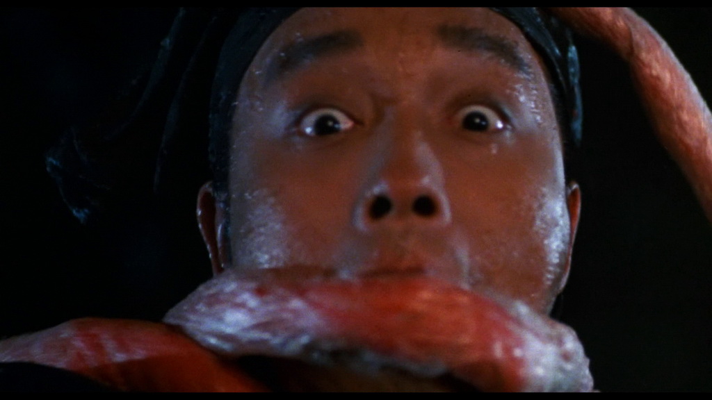 Sans rentrer dans les détails, car n’étant pas équipé comme il se doit, la qualité des masters est tout bonnement excellente, avec une mention spéciale pour le master 2k du deuxième film qui est tout bonnement superbe. L’image est tellement léché, avec suffisamment de grain pour ne pas dénaturer l’ensemble, qu’on a même l’impression de redécouvrir les films. Il faut dire qu’avec les nombreux filtres de couleurs de chacun des trois films, c’est un vrai régal pour les yeux de replonger dans l’univers de la trilogie et, si on omet le kitch de certains effets typiques du cinéma hongkongais des années 80 (mais tellement charmants pour l’amateur), on n’a clairement pas l’impression que les films ont plus de 35 ans. Le travail de restauration est réellement à saluer.