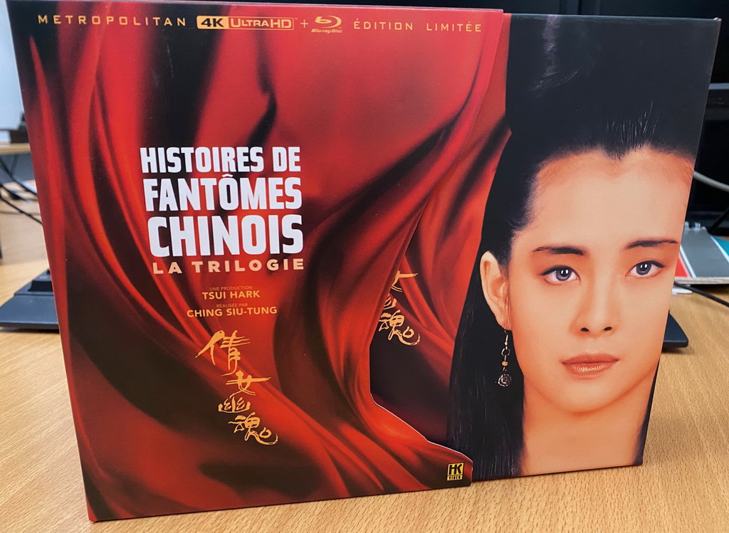 La trilogie Histoires de Fantômes Chinois fait partie de ces films cultes du cinéma de Hong Kong qu’on a longtemps attendu en blu-ray. D’abord sortis en VHS, puis en magnifique coffret DVD chez HK Vidéo, il était devenu difficile aujourd’hui de se procurer ce dernier tant les prix en occasion ont explosé avec des tarifs dépassant parfois les 200€, la rareté de certaines éditions DVD à tirage limité ayant bien donné à manger aux spéculateurs. Mais ça, c’était avant puisque HK Films, anciennement HK Vidéo, s’est relancé depuis quelques mois et nous propose depuis le 14 février 2026 un nouveau superbe coffret réunissant les trois films, le premier en format 4K UHD et blu-ray, les deux autres uniquement en blu-ray. Et on peut dire qu’une fois de plus, ils ont vu les choses en grand.