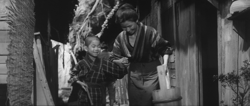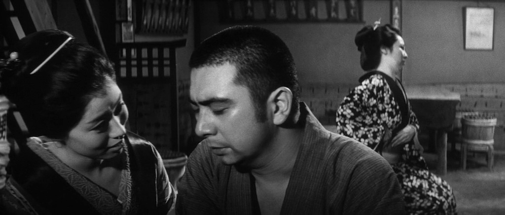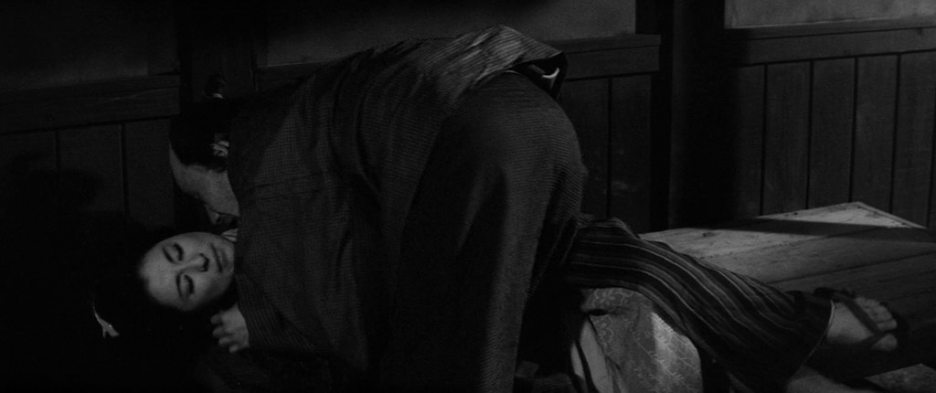 Ici, la cécité du héros isole le personnage, accentuant son statut de paria, ce qui ne le rend que plus dangereux. Le personnage est souvent détestable car il n’incarne aucun idéal moral. Il évolue dans un monde corrompu, où il n’existe pas de justice nette et il va profiter de chaque situation pour en tirer parti, le film aimant explorer chaque zone d’ombre de son personnage, quitte à ne pas caresser le public dans le sens du poil. Le ton y est ici plus sombre, plus pessimiste, avec des scènes souvent pleines de cynisme, parfois dérangeantes à l’instar de cet anti-héros. Les Origines de Zatoichi – Le Bandit Aveugle semble refuser par-dessus tout un quelconque héroïsme de son personnage central antipathique, résigné de vive dans ce monde où la morale est souvent très opaque. La mise en scène du film est sobre, sèche, et même s’il est vrai qu’il manque un certain souffle cinématographique, c’est pour mieux dépeindre cette société brutale où l’humiliation et le danger rodent à chaque coin de rue.