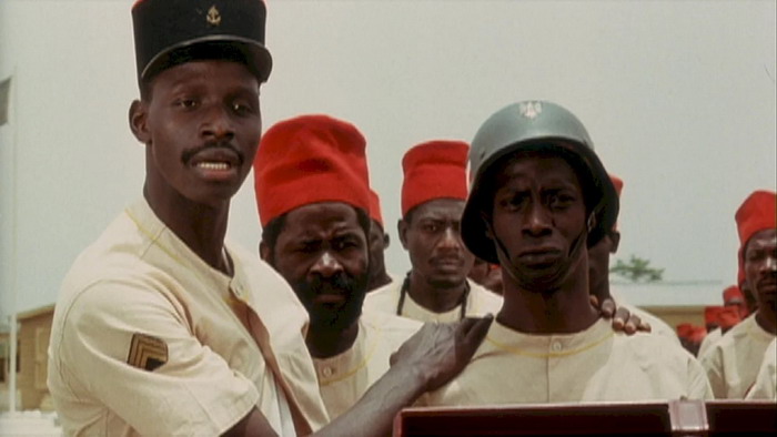Camp de Thiaroye s’agit sans nul doute d’une formidable référence cinématographique, cultivant un rythme soutenu mais foncièrement passionnant dans sa peinture sans fioritures de l’infanterie franco-africaine coloniale, armée instrumentalisant sa chair à canon pour mieux la considérer in fine comme une quantité négligeable. Si la violence des uns répond à celle des autres les toubabs sont plus que jamais sur la sellette tendue par Ousmane Sembène : capitaines dédaigneux, généraux sans foi ni loi ou encore lieutenants veules et soumis aux ordres hiérarchiques font figure de pions moralement médiocres voire entièrement condamnables au regard de leurs agissements. Les sénégalais, maliens et autres ivoiriens sont quant à eux dépréciés tels des demi-hommes, en voulant pour preuve leur pécule réduit de moitié par l’administration dudit camp.