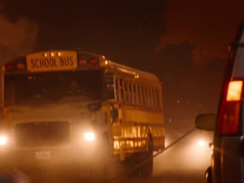 Un chauffeur de bus, Kevin McKay et une institutrice, Mary Ludwig, guident un bus rempli d’enfants à travers un incendie dévastateur.