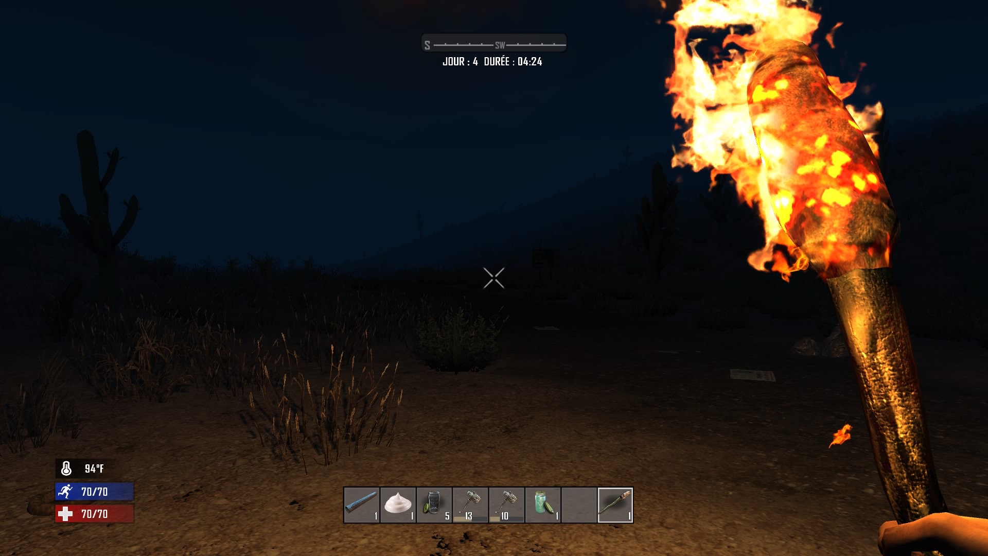 Les jeux de survie, notamment online, ce n’est pas forcément mon truc. Déjà jouer online, je n’aime pas franchement ça. Moi, j’aime les ambiances, les histoires, et pour me plonger dans une ambiance, c’est toujours mieux seul. Oui, Chery m’aura parfois parlé de DayZ, si bien que je connais tout de son système de jeu, de ces bugs, de l’histoire du rachat par Bethesda et tout ça. Sans jamais avoir touché le jeu, car en plus, oui je ne suis pas un joueur PC. Bon déjà je suis sur Mac certes, mais je n’aime pas jouer sur ordinateur. J’aime bien avoir une manette bien en main, et surtout bien séparer les choses : la console pour jouer, l’ordinateur pour travailler et internet ! Puis vint l’été 2016, et la sortie sur PS4 de 7 Days to Die, un jeu du même genre, en early accès sur Steam depuis 2013. Et là je me suis dis « bon allez, pourquoi pas ». Passage sur le PS store, achat du jeu, installation, lancement, nouvelle partie MAIS pas online, chargement et putaiiiiiin de merde que c’est méga moche ! Bon oui, le jeu date de base de 2013 mais tout de même. Quelques objectifs pour nous apprendre comment fonctionne le jeu, comme ramasser du bois, de la pierre, de l’herbe, construire ma première hache de pierre, un sac de couchage, et là, la dure réalité des simulateurs de survie me rattrape. Oui, il va falloir gérer et appliquer une logique de la vie réelle dans un jeu : si je suis à poil, je vais vite attraper froid sous la pluie et pourrait tomber malade ! Mais si j’ai trop de vêtements et traverse le désert, je pourrais me prendre une méchante insolation dans la gueule.