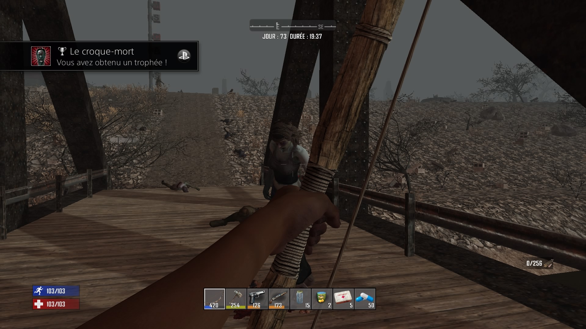 Par contre, pour ce qui est du mode en ligne, on se retrouve encore une fois avec un manque d’optimisation assez flagrant. Là où sur PC les serveurs peuvent accueillir des tas de joueurs (40 ou 60 je ne sais plus), sur PS4, ce sera uniquement 4 joueurs. Et tenez vous bien car si vous êtes chasseur de trophées, vous allez rager pour avoir le trophée « tuez 2500 joueurs ». Courage à ces joueurs ! 7 Days to Die donc, c’est sympathique, si on se prend au jeu, c’est de la bonne survie, MAIS ce n’est absolument pas bien optimisé pour y jouer sur PS4. Alors certes du coup, ils nous vendent le jeu à 30 euros au lieu du prix fort d’un jeu sur console, mais tout de même. Pour un jeu ayant 3 ans, un jeu avec tous ces ralentissements, un jeu AUSSI moche, ça fait un peu mal au cœur. L’amateur par contre en aura tout de même pour son argent vu le temps qu’il pourra passer dessus. Et oui, car qui dit survie, dit que le but ben c’est de survivre, il n’y a donc pas de fin.