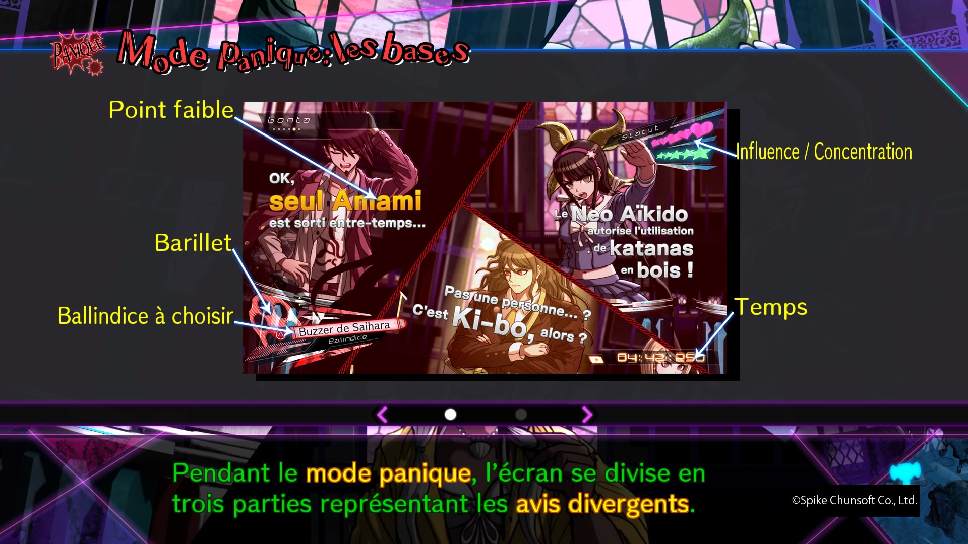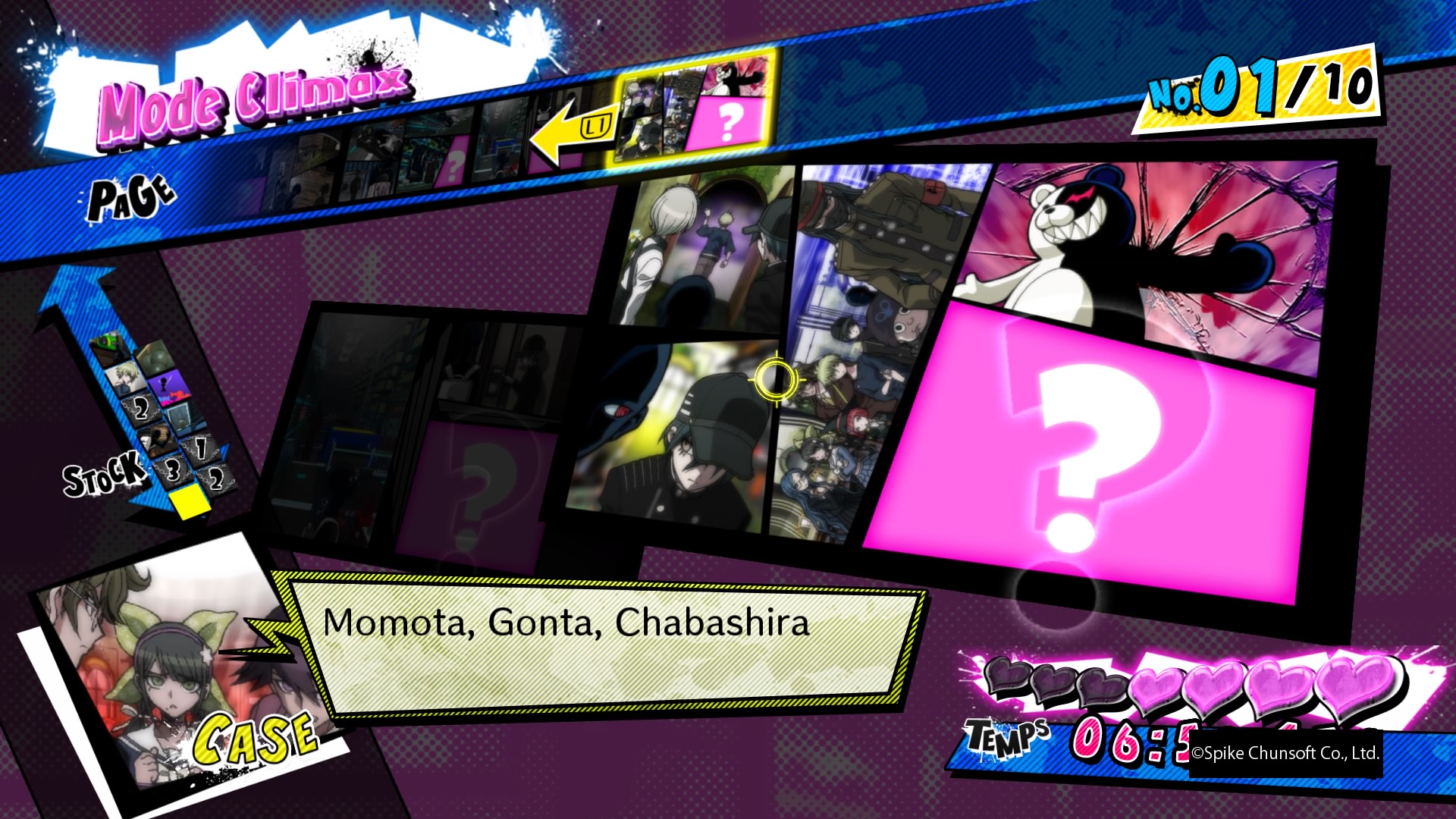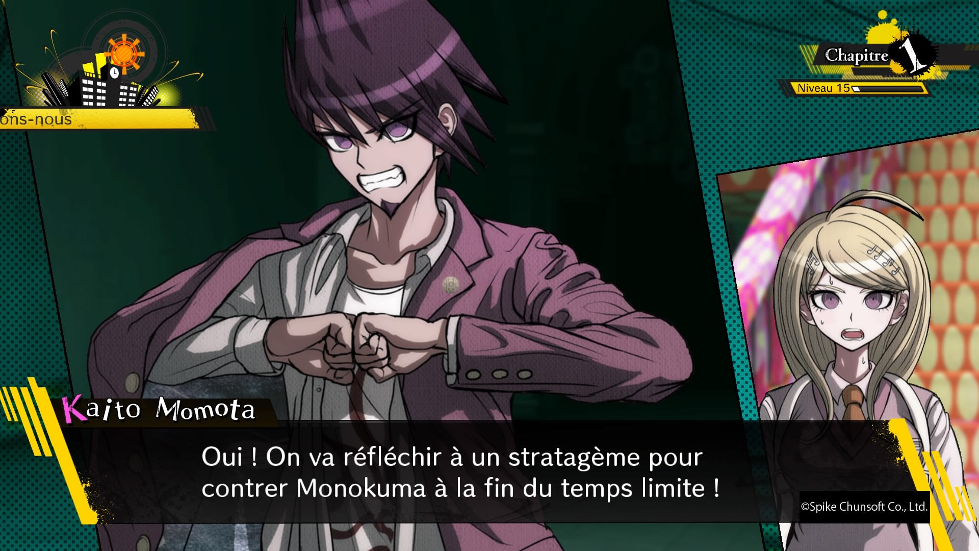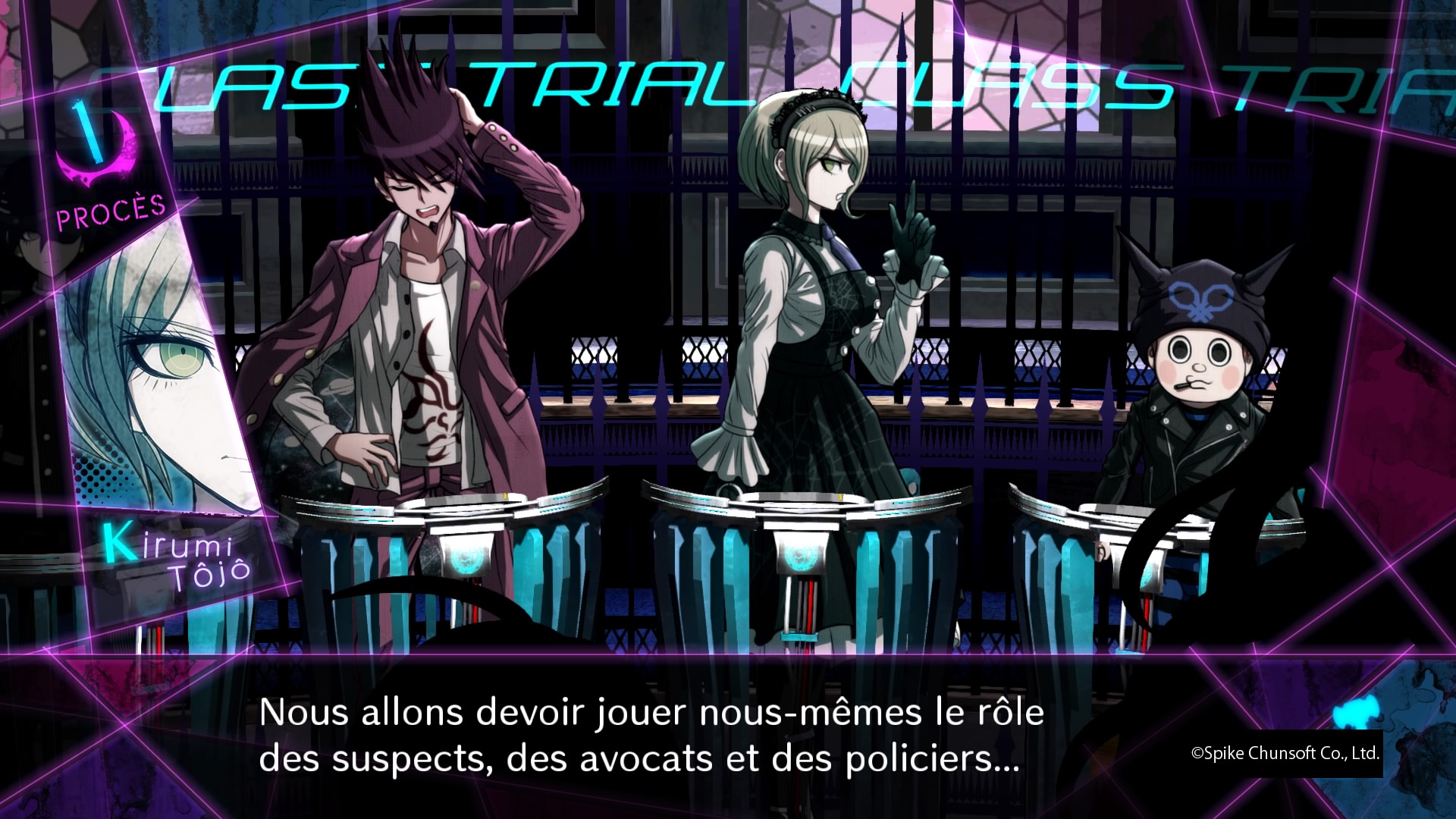 Il fallait faire des choix, et Danganronpa V3 ne fait pas les choses à moitié, quitte à décevoir certains joueurs. Mais ce qu’il entreprend, il le fait bien. Il arrive à nous accrocher dés le tout premier procès grâce à un procédé que je ne peux dévoiler (aucune capture de cette critique ne spoile d’ailleurs, elles proviennent toutes du premier chapitre), il contient énormément de nouveautés dans les procès et de nouveaux mini jeux, Monokuma est comme toujours sadique et a à présent cinq petits bambins avec lui (tous doublés par la même personne), et la durée de vie est même plus grande que sur les précédents jeux. Peut-être par moment trop grande d’ailleurs, notamment pour le prologue, qui était bien trop court sur le premier jeu (un petit 30/40 minutes) et qui atteint ici facilement les deux heures. Mais passé ce prologue et une fois vraiment plongé dans l’aventure, ce nouvel opus ne nous donne que du bonheur. Et qui dit Danganronpa dit petits jeux qui se débloquent une fois l’aventure terminée. Ce troisième opus ne fait pas les choses à moitié à ce niveau là non plus, puisque outre la possibilité de retourner au casino ou à la machine à cadeau via le menu, il nous offre trois modes supplémentaires.