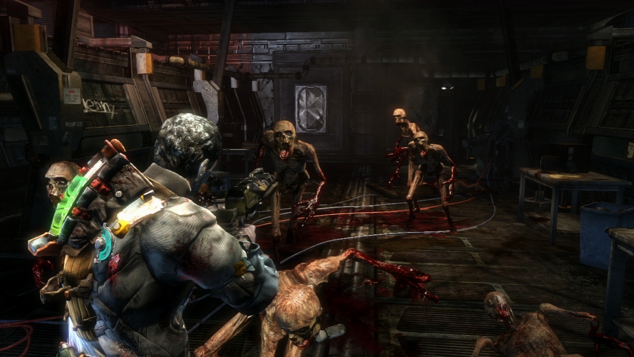 Car le jeu semble avoir confondu rythme et évolution avec vagues d’ennemis. C’est simple, on arrive dans un nouvel endroit, une vague d’ennemis approche, on les élimine jusqu’au dernier, ce qui déverrouille la porte pour se rendre dans le lieu suivant, et l’on va recommencer une nouvelle fois. Les moments calmes se font rares, on n’évoluera plus dans des couloirs vides à craindre la suite, le jeu ne nous laissera pas dans le suspense bien longtemps, non. Le jeu semble vouloir combler ses trous avec de l’action par vague d’ennemis. Et honnêtement, quel dommage. Et pourtant, ce que je viens de citer, ce que je souhaitais pour Dead Space 3, le jeu est parvenu à le faire, une fois, lors de notre arrivée sur la planète. Oui, après avoir évolué dehors, on trouve refuge dans un endroit délabré, on doit se rendre au sous-sol pour prendre une nouvelle tenue (la fameuse pour ne plus avoir froid), on évolue dans le noir, on ne sait pas encore sur quoi l’on va tomber, et nous voilà sans prévenir face à des ennemis vivants cachés dans le noir. Un moment bien trouvé et parfaitement réussi. Ce moment là, le jeu ne va jamais parvenir à le réussir de nouveau.