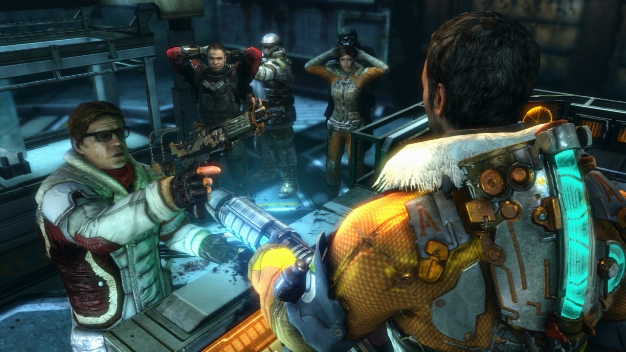 Dead Space 3 souffre dans un premier temps d’une narration pas fameuse, le tout mixé avec des personnages et situations plus clichées tu meurs. Non pas que les précédents opus étaient des modèles à ce niveau, mais quand une histoire simple est au service d’une ambiance réussie et d’un jeu passionnant, on pardonne et l’ensemble fonctionne. Hors Dead Space 3 délaisse la plupart du temps son ambiance et accumule les scènes d’action arrivant comme pour combler des trous d’intrigues, à coup de vagues d’ennemis interminables. Moralité, les gros défauts d’écritures ressortent immédiatement. Ainsi, Isaac accepte de repartir à l’action car son ex Ellie est en danger. Lui qui cauchemardait pendant tout le second opus sur Nicole, il l’aura bien vite oubliée. Et pour la sauver, il devra faire équipe avec Norton, le nouveau copain d’Ellie, un brin jaloux, qui nous déteste, et ne va pas comprendre que si la mission échoue, on meurt tous. Hors lui, il veut juste vivre avec Ellie et foutre le camp de la planète. Du coup, attention, il va nous trahir auprès du grand méchant. Wow ! Quelle intrigue, quel développement de personnages. Ce qui aurait pu être une quête de rédemption se transforme en trio amoureux un brin stupide.