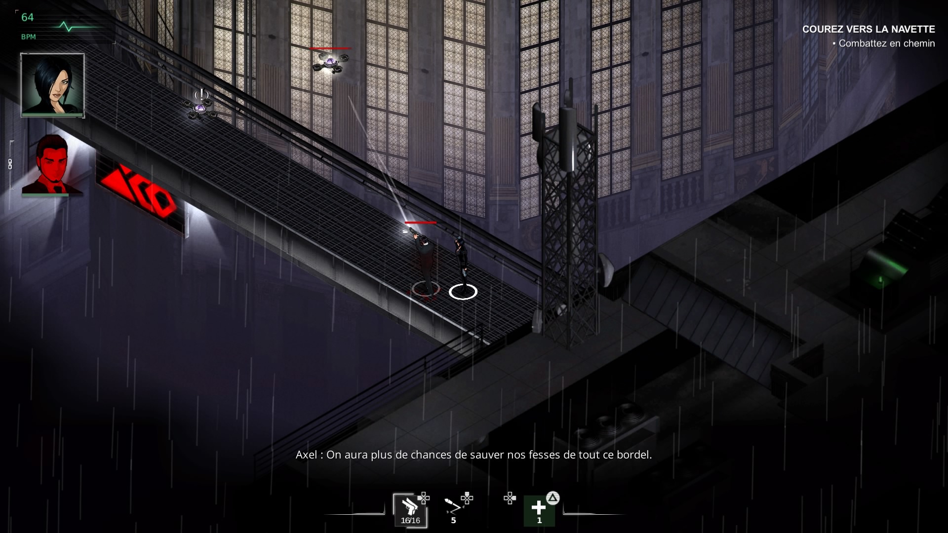 Terminons donc en parlons de la qualité sonore du titre, amenant ainsi à sa plus grande qualité, mais également un de ces défauts gênants. Sushee a soigné l’ambiance sonore, puisque le score musical est franchement sympathique, voir même excellent, avec quelques rares reprises de thèmes des précédents jeux (du second en tout cas). Franchement sympathique. Mais malheureusement à côté, on a les doublages du jeu, en anglais intégralement, qui ne sont pas extraordinaires, loin de là. Ils manquent de naturel, sonnent faux la plupart du temps. Et c’est clairement dommage, car les dialogues, s’ils ne sont pas non plus foufou, sont sympathiques et dans le bon ton, les personnages cohérents et respectant ce qui a été fait par le passé. Fear Effect Sedna, c’est ça, un jeu qui souffle le chaud et le froid, mais qui m’aura finalement donné ce que j’attendais de lui. De quoi vraiment attendre le remake du premier… et je l’espère un jour, de sa suite Retro Helix également.