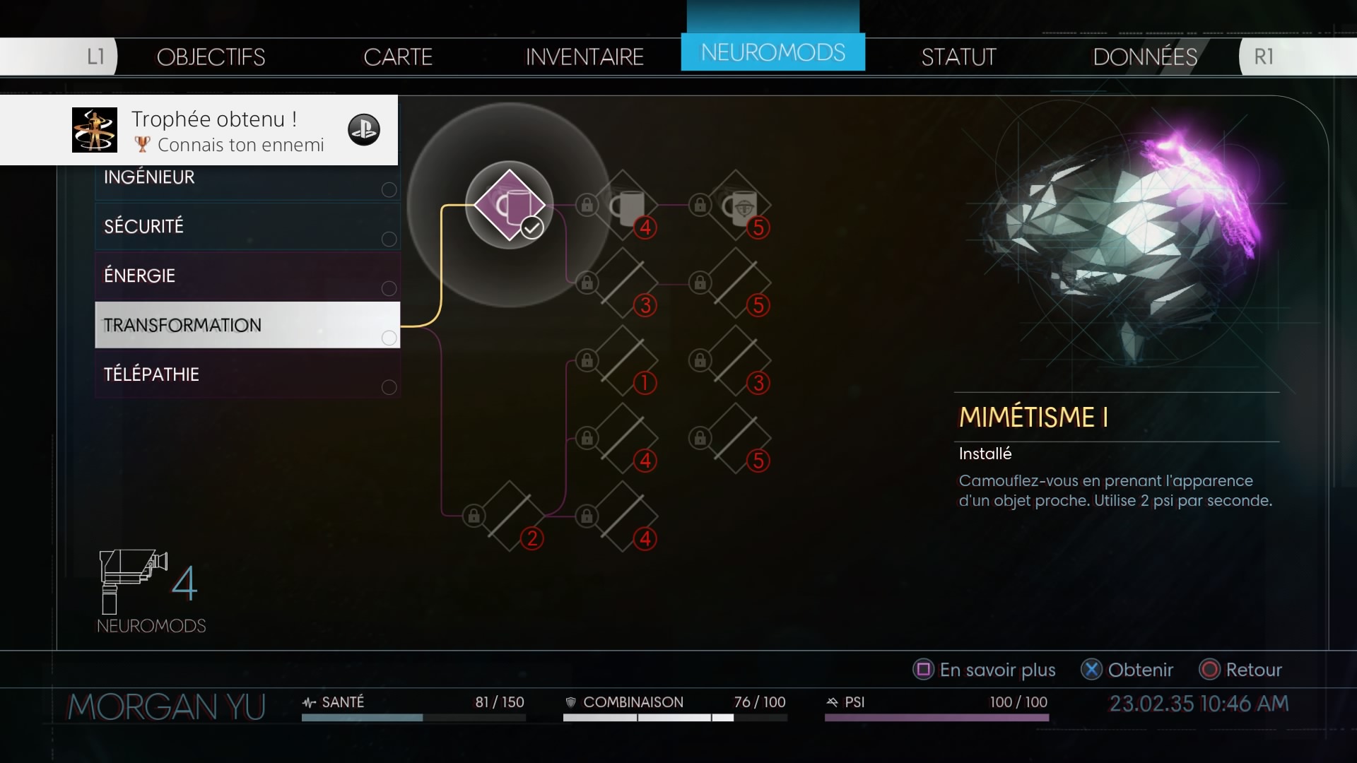Pour un FPS, la durée de vie est tout simplement énorme. Bien entendu, ceux qui ne feront que la quête principale passeront à côté de beaucoup d’éléments. Les quêtes secondaires, nombreuses, nous permettront d’aider des PNJ qui se joindront à nous à d’autres moments de l’aventure, mais également de récupérer de nouvelles armes, ou des Neuromods, qui nous permettront d’acheter de nouvelles compétences. En ne faisant que l’aventure principale, celle-ci peut se boucler en 15h, ce qui est déjà énorme pour un FPS. J’aurais personnellement bouclé l’aventure en 23h, en ne faisant que la moitié des quêtes annexes, et en explorant quasiment l’intégralité de la station. Car l’exploration, parlons en. Le studio nous laisse la possibilité d’explorer la station comme on l’entend, mais pour cela, il va falloir ruser, et les compétences vont jouer, énormément. Une porte fermée par un code ou une carte ? Le joueur pourra aller chercher ce code (ou carte donc), ou alors chercher un conduit de ventilation pour contourner le souci. Ou alors se servir de ses pouvoirs extra-terrestres pour prendre l’apparence d’un objet et passer par une petite fente dans un mur ou une fenêtre, ou encore pour activer un interrupteur hors de portée via la télékinésie. Les possibilités sont énormes pour peu que l’on prenne le temps d’explorer toutes les possibilités.
