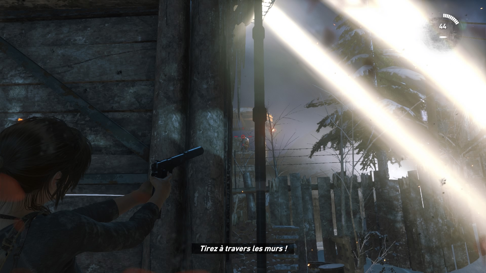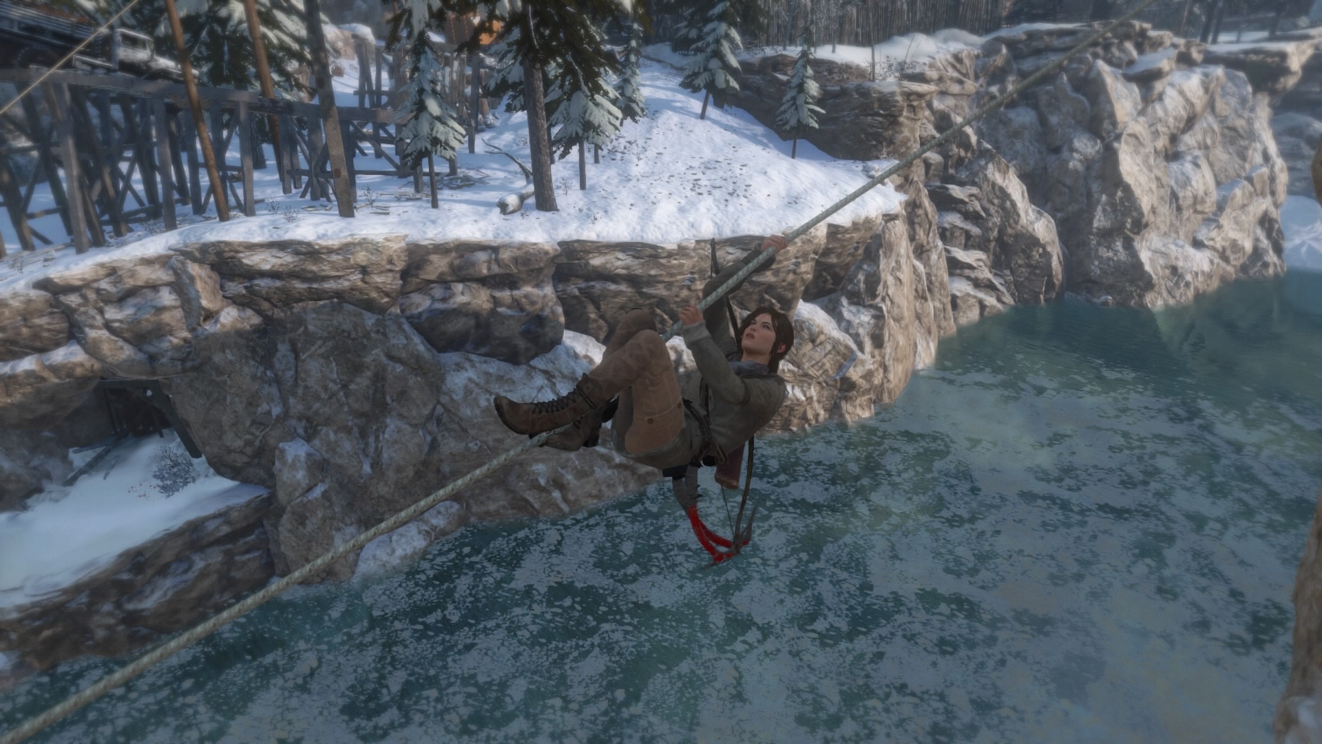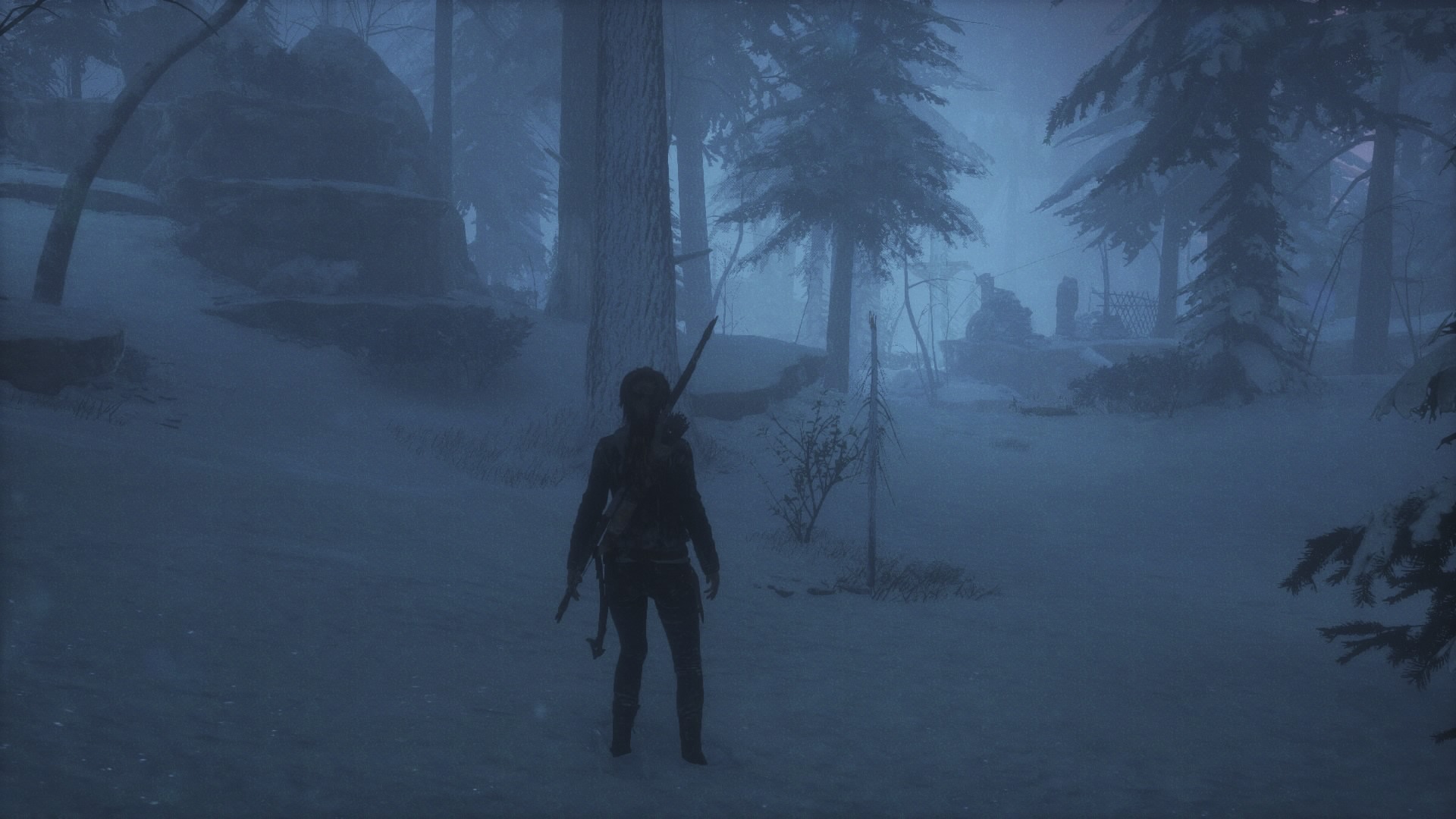 Le désert, les ruines, le sable, la poussière, puis 15 minutes après (et une évasion d’un lieu ancien que l’on fait misérablement exploser), finit la Syrie, et le jeu se déroulera intégralement en Sibérie. Dommage. Mais bon, la Sibérie, c’est beau, surtout sous la neige. Mais avant de parler du gros défaut de l’œuvre outre son manque d’identité, parlons des ajouts. Ceux-ci sont peu nombreux, et Crystal Dynamics n’a jamais poussé à fond les éléments qui auraient mérités de l’être, comme par exemple la survie. Quand on commence véritablement le jeu, seul, perdus, il fait froid, il faut prendre des forces et chasser, comme dans le premier, avec l’arc. Une idée encore une fois intéressante, mais qui passé ce passage, ne servira à rien, à part pour récupérer de la fourrure et améliorer des armes donc. Les développeurs ont ajoutés des prédateurs dans la forêt, et malheureusement, à part quelques loups que l’on croisera par hasard (et une fois, je suis tombé nez à nez avec un jaguar ou un truc du genre), ces prédateurs se limiteront à deux passages obligatoires, avec un ours, puis avec un Lynx. Limité donc. Dans le même ordre d’idée, notons l’ajout de la neige, qui par endroit sera plus profonde, et Lara ne pourra donc pas courir, ni sauter ou faire de roulades. Ce qui peut être gênant quand un ours nous poursuit. Mais ces moments sont encore une fois peu nombreux. Sinon dans les ajouts intéressants mais arrivant tardivement, on pourra noter l’ajout du grappin, qui rappellera des souvenirs aux vieux joueurs, ainsi qu’un couteau de chasse, permettant de nouvelles éliminations silencieuses et de couper des cordes. Les tombeaux facultatifs sont de retour, et les développeurs ajoutent à cela des missions secondaires, très simples. Parler à un PNJ, aller soit ramasser un objet, soit tuer des ennemis, retourner parler au PNJ, et à nous l’expérience.
