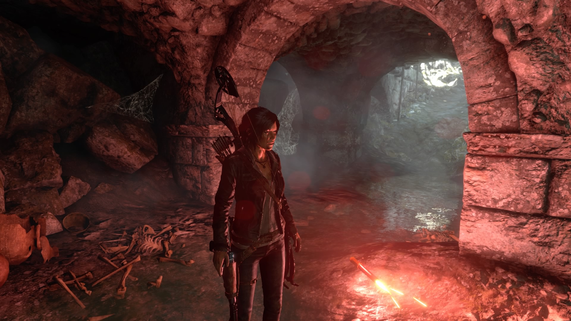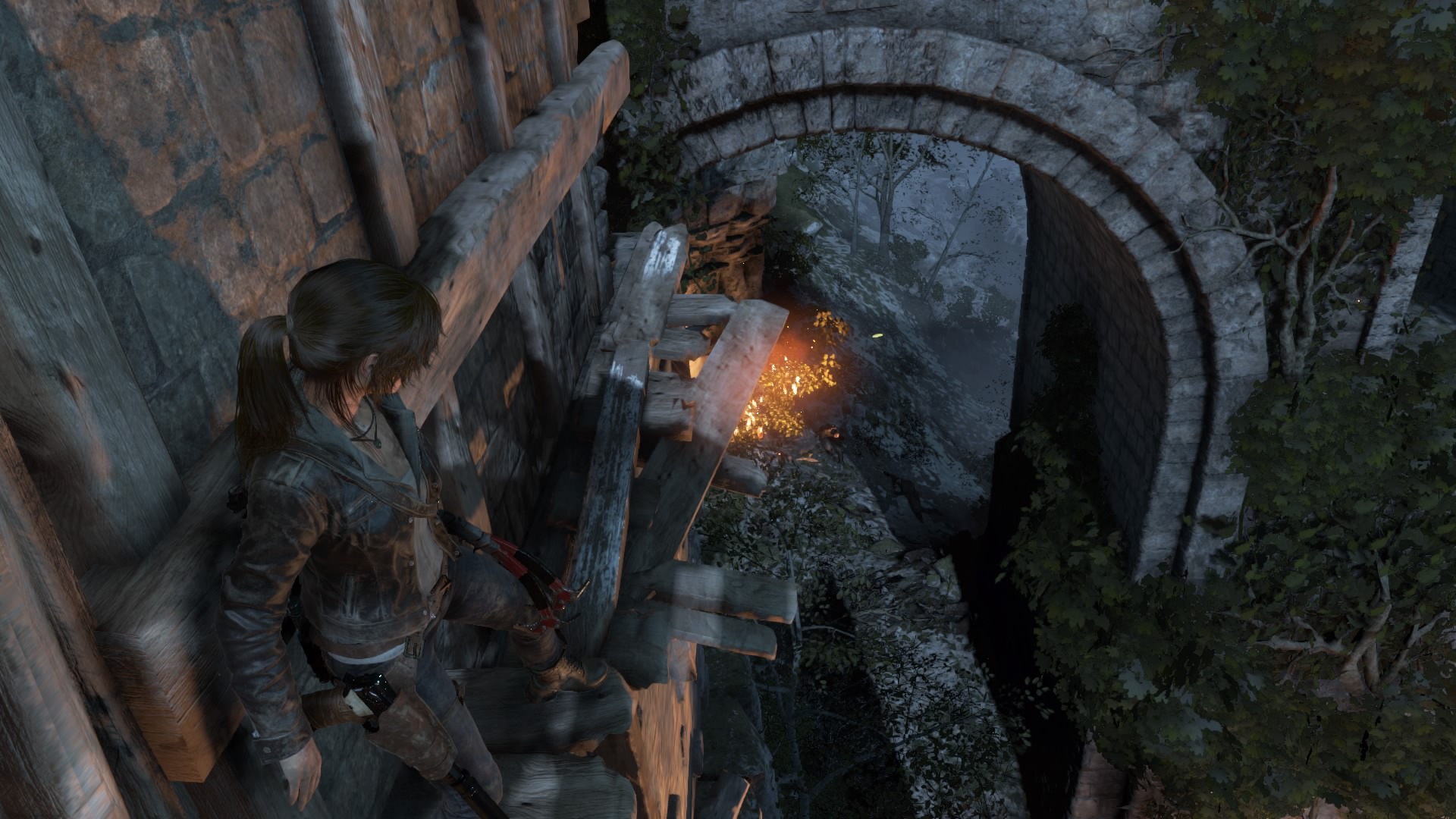 Rise of the Tomb Raider reprend l’exacte formule du reboot, à savoir un mélange de tout ce qui se fait actuellement. Un peu de Uncharted, un peu de FPS, des feux de camps pour améliorer armes et compétences, des trésors à trouver, un marchand pour acheter de nouvelles armes, quelques énigmes, et pas mal de monde à buter dans tous les sens. Et comme pour le premier, on va prendre beaucoup de plaisir dans l’immédiat à jouer. Car le rythme est soutenu, on passe d’un élément à un autre, on se perd parfois quelques minutes sur une énigme dans un tombeau facultatif (il y en a neuf, très bons), puis le jeu nous reprend par la main, avec de l’escalade, suivie de quelques fusillades, des explosions, une fuite scriptée, et bim on retourne dans un monde semi-ouvert pour explorer à nouveau avant de suivre l’aventure avec une cinématique très cinématographique. L’aventure se fait même plus longue que le premier opus. Un grand jeu donc ? Oui et non. Comme je l’ai dit, dans l’immédiat, on prend son pied, le jeu est fun, manier Lara est un plaisir, on peut s’attarder sur les deux zones ouvertes pour partir à la chasse aux trésors, les compétences que l’on débloque petit à petit nous permettent de découvrir de nouvelles zones dans des maps déjà explorées, on s’éclate donc.