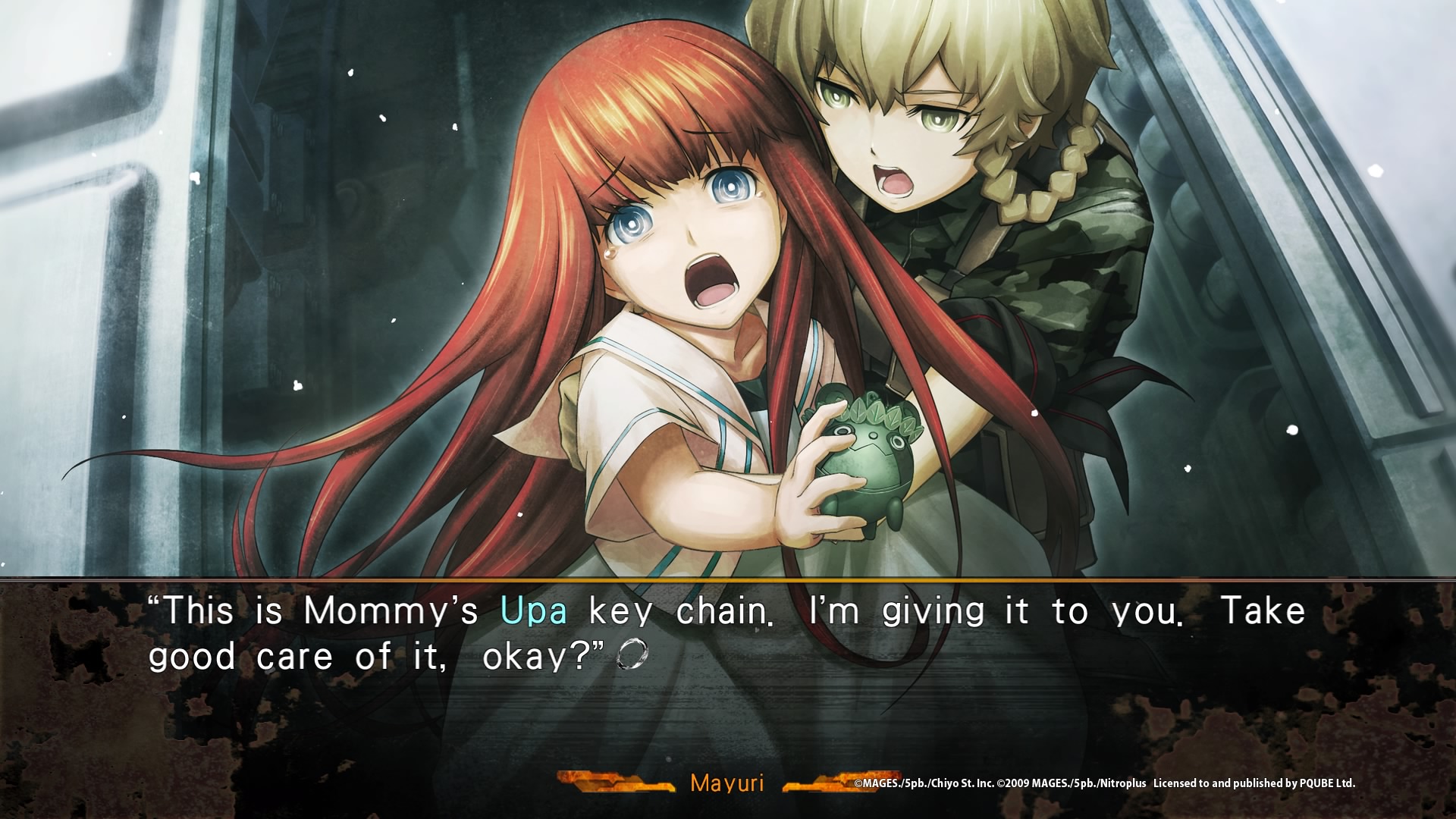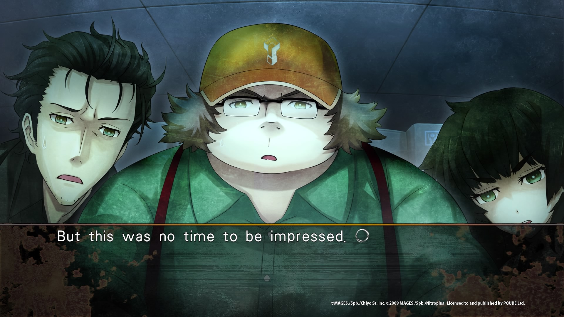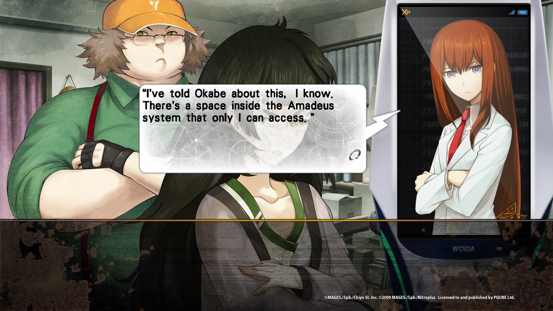 Et je n’en révélerais pas plus pour ceux souhaitant donc se lancer dans le jeu. Mais comme dit plus haut, Steins;Gate 0 n’est pas que l’histoire d’Okabe Rintarô, et les autres personnages sont tout aussi intéressants, même si certains introduiront des notes plus légères au récit. Oui, Daru par exemple sera au début de sa relation avec celle qu’il sait par avance qu’il épousera (la peur de la connaissance de son soit futur). Pas inintéressant, mais déjà moins sombre. Maho la scientifique et Suzuha, très différente de celle que l’on connaissait dans le premier jeu sont bien plus intéressants, puisque souvent tiraillés entre plusieurs sentiments aussi variés que l’admiration, la crainte, l’espoir, la haine. Et bien entendu, cela va de même pour les personnages secondaires. Est-ce que Moeka ou même Mr Braun sont-ils dignes de confiance dans ce monde ou sont-ils encore des espions ? Est-ce que Amadeus, l’intelligence artificielle basée sur les mémoires de Kurisu, est la même Kurisu que Okabe a connu ?