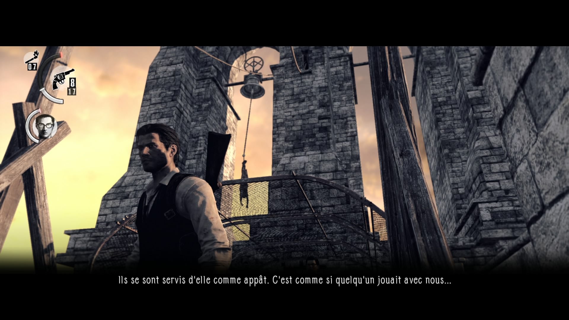 Les diverses rencontres, amicales (peu nombreuses) ou autres surprennent toujours plus, comme avec l’arrivée de cet homme « boite » qui a le don de réapparaître partout. Dommage que dans la forêt ou le village en début de jeu, le chemin tout tracé des ennemis soit si faible et limité, rendant l’infiltration finalement assez simple par moment. Ceci dit, tester le jeu en mode survie rend l’aventure beaucoup plus hard. Et l’histoire dans tout ça ? The Evil Within n’est pas qu’une succession de scènes cauchemardesques, même si son intrigue reste brumeuse pendant les premières heures du jeu, pour mieux nous mettre à la place de son personnage principal. Quand les révélations arrivent finalement, aux alentours du chapitre 9, on se doutait un peu du fin mot de l’histoire, mais dans le fond, on est également rassuré que cette plongée vertigineuse et glauque soit finalement cohérente. Mikami Shinji signe donc un grand retour en force malgré ses quelques défauts signalés plus haut. On pourra également pester sur la version Europenne du jeu, ne nous proposant qu’une VF intégrale au mieux, puisque le menu nous propose des choix étranges (espagnol, allemand et italien… non merci !). Quoi qu’il en soit, face à la concurrence actuelle en matière de survival horror, The Evil Within est lui un vrai survival, qui fait du bien !