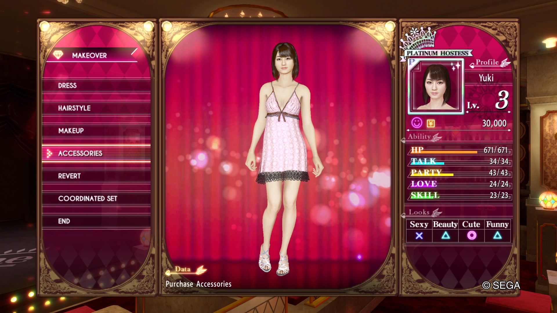 Que serait un Yakuza sans ces bars à hôtesses ? Majima ici va se lancer dans cette industrie montante justement, dès le chapitre 7. Si cela peut nous rappeler certaines activités de Yakuza 4 avec Akiyama, le concept est poussé à l’extrême ici. Oui, il faudra gérer un cabaret en visant la clientèle de certaines zones pour finalement être le meilleur. Cela ira de la gestion du personnel chaque soir, en faisant des roulements pour ne pas trop fatiguer ces dames, à l’entraînement de nos hôtesses platinium, sans oublier en choisissant leurs accessoires et vêtements pour augmenter certaines de leurs capacités et plaire à la clientèle visée. Mais ce n’est pas tout, puisqu’il faudra également donc ouvrir le cabaret à la clientèle, et gérer la soirée. De la vraie gestion donc, à savoir choisir en fonction du client la fille qui ira à sa table, surveiller les demandes, bien comprendre les signaux envoyés par nos employés pour savoir ce que le client veut (un autre verre, vider le cendrier, une serviette, le menu, de la glace), ne pas hésiter à la fin d’une session de faire un cadeau à l’hôtesse (ce qui remonte sa barre de vie), à la féliciter, ou si tout se passe bien, à proposer une extension au client. Comme pour Kiryu, il va falloir embaucher des hôtesses, certaines arrivant après des quêtes secondaires, d’autres pouvant venir en dépensant des points de compétences, ou tout simplement en cherchant des perles rares dans la rue. Vous allez y passer du temps, mais Majima aura également d’autres activités annexes, comme par exemple la possibilité d’envoyer des agents dans divers pays pour nous chercher des objets rares ou des matériaux pour construire des armes.