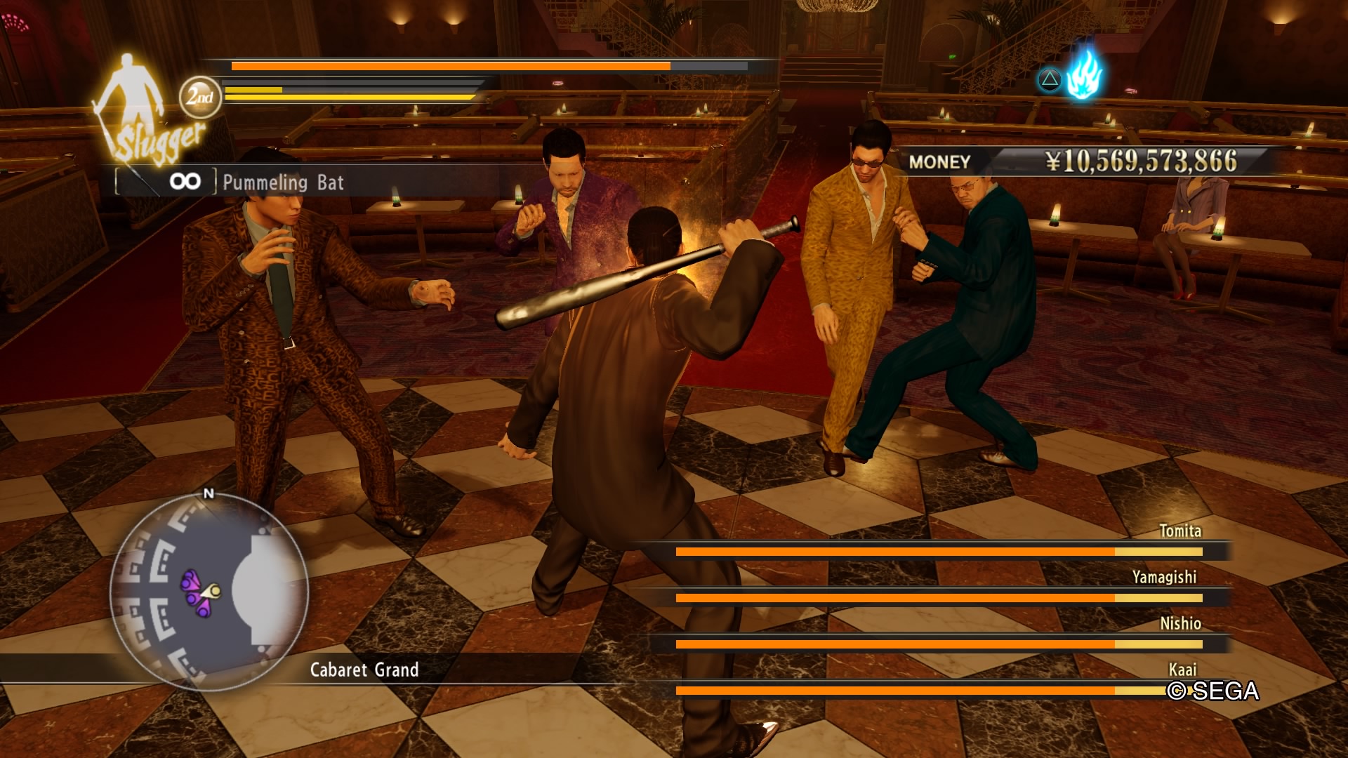 Car dans Yakuza 0, c’est l’argent qui est en roi. L’argent permet tout, permet d’acheter le bonheur… mais également permet d’acheter des capacités spéciales, d’évoluer plus vite, ou d’éviter les ennemis. Le jeu a bien vu les choses en plaçant l’argent au cœur de tout, à la fois du gameplay mais aussi de l’histoire. Ainsi dans la rue, on pourra rencontrer à de nombreuses reprises Mr Shakedown, un monsieur muscle devenant plus fort au fur et à mesure de nos combats, et qui n’a qu’un seul but, nous écraser pour nous prendre tout notre argent. Nos millions de yens durement gagnés en gros, mais si nous parvenons à le battre, à nous une somme énorme qu’il transportait sur lui. Chaque combat nous rapporte de l’argent en fonction de nos actions, que l’on pourra ensuite investir où l’on veut, en compétences, dans des activités annexes, ou tout simplement jeter dans les rues. Car une des nouvelles fonctionnalités du jeu, basée sur l’argent, nous permet de débloquer la route en jetant de l’argent. Oui, jeter 10 000 yens dans la rue et tous les passants, PNJ comme ennemis potentiels, vont se jeter pour en récupérer le plus possible. Astucieux lorsque l’on ne veut pas perdre de temps dans des combats inutiles.